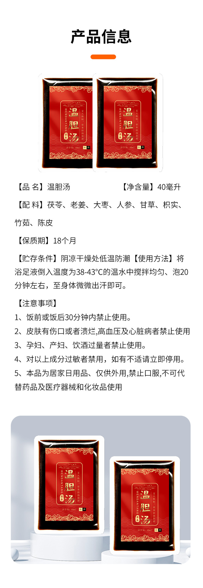 温胆汤泡脚包免熬煮式草本原液足浴包家用艾草爆汗速溶足浴液批发