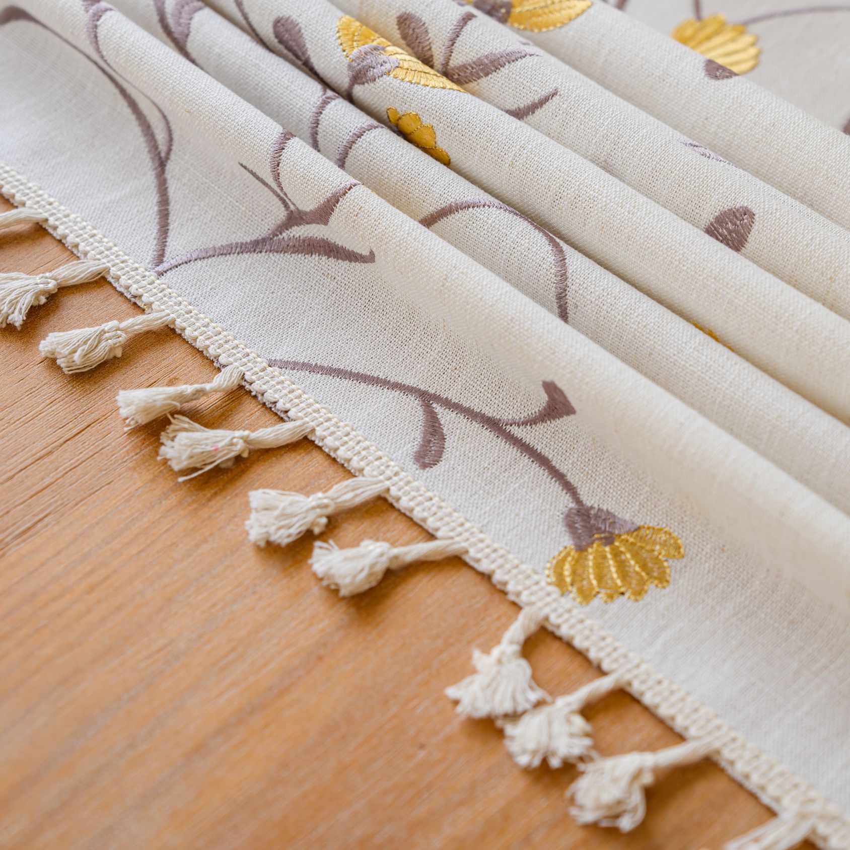 2:本厂何布料可以定制配套桌布、桌旗、餐垫、杯垫、抱枕、腰枕、沙发巾和窗帘等一系列居家用品配套产品。(如有需要联系联系客服)