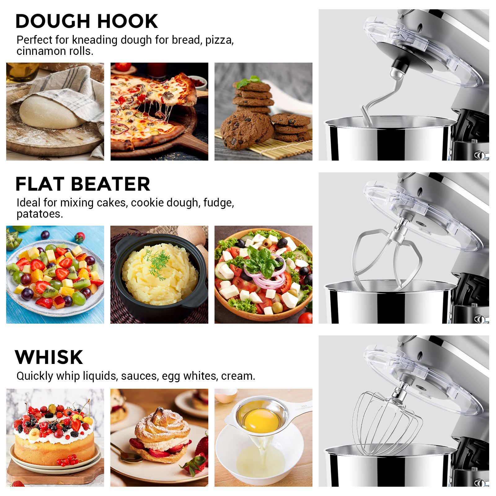 透明锅盖,铸铝花刀,铸铝面钩,不锈钢打蛋笼铸铝接头,蛋清分离器,刮刀,绞肉配件,灌肠配件,果汁杯