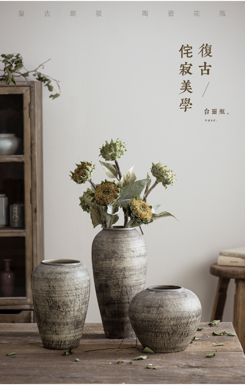 陶瓷复古插干花客厅软装饰品摆件电视柜创意家居港风日式花瓶简约