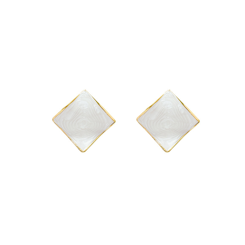 银针白色滴釉方块耳钉女复古轻奢气质几何形耳环韩版通勤百搭耳饰