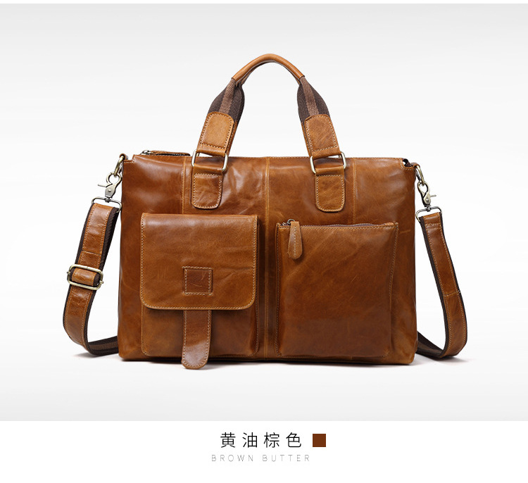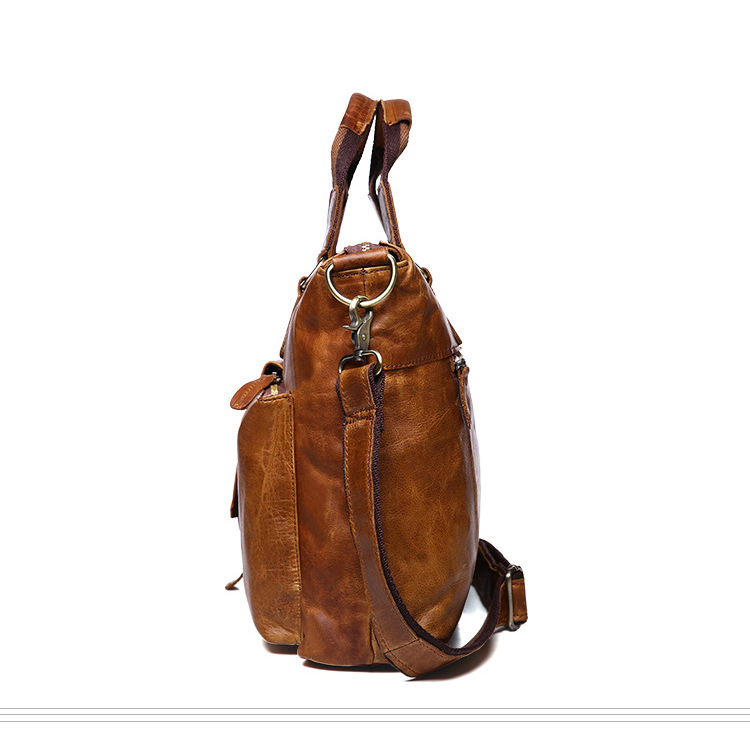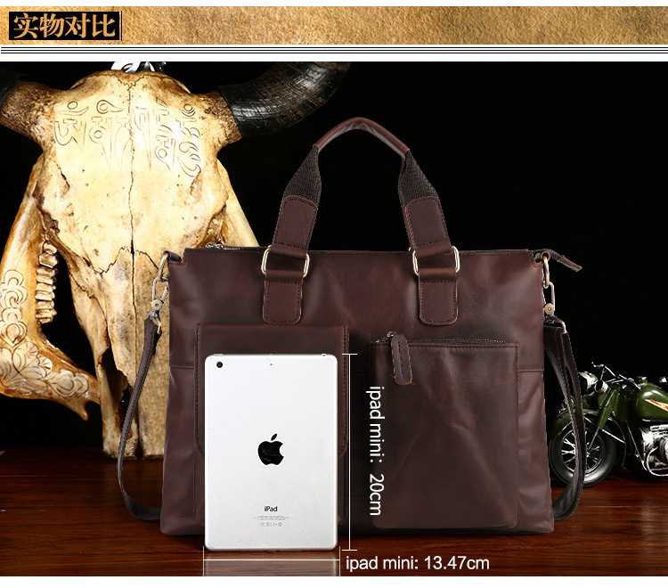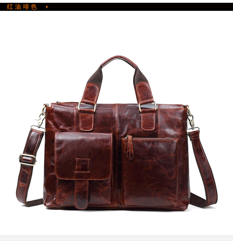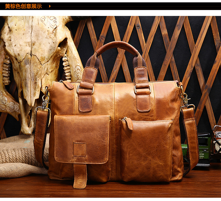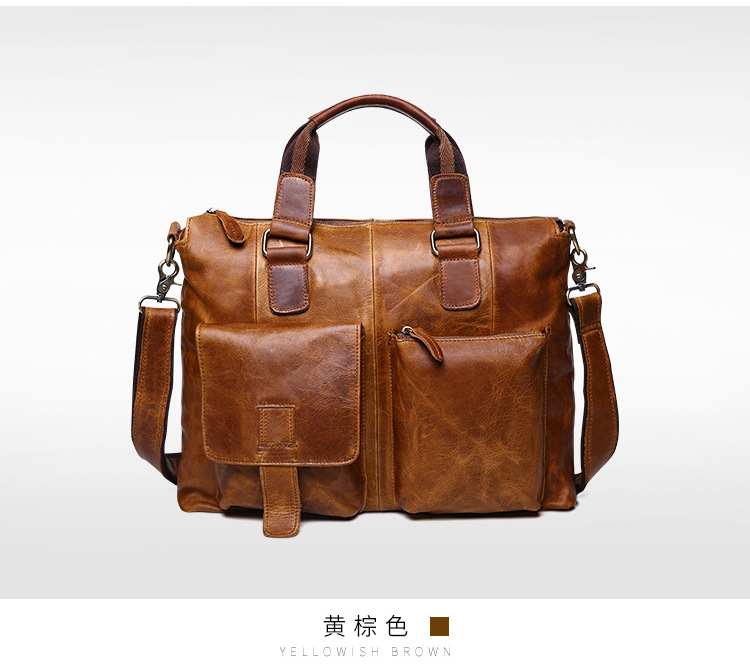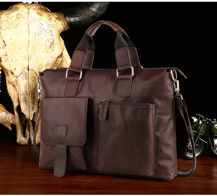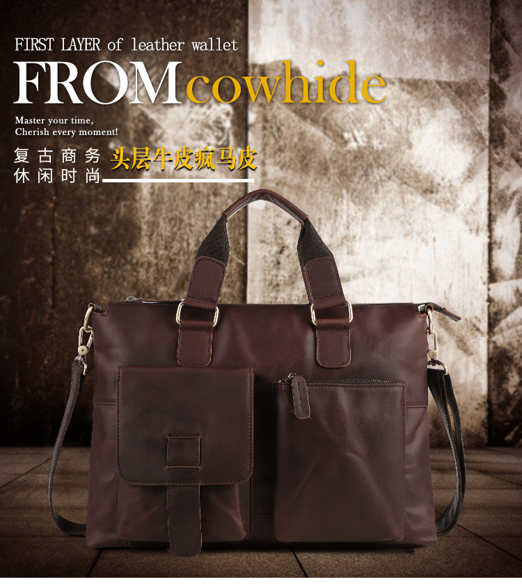 真皮男包高级感疯马皮手提包欧美复古单肩包商务电脑包手提公文包