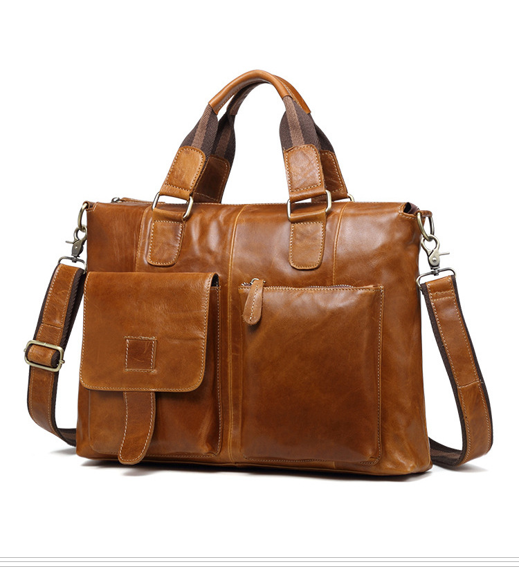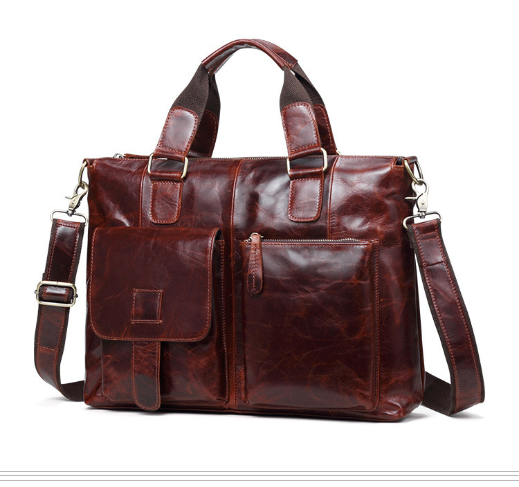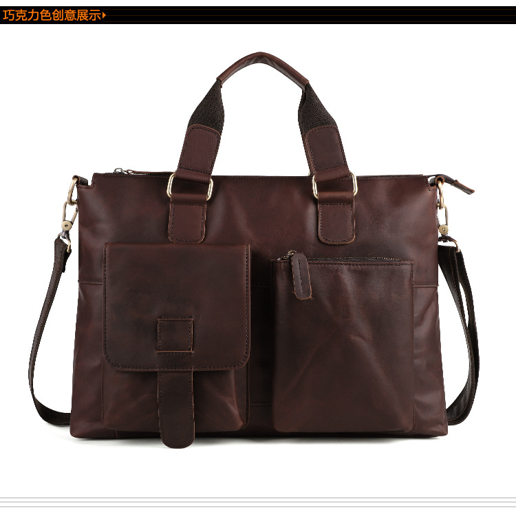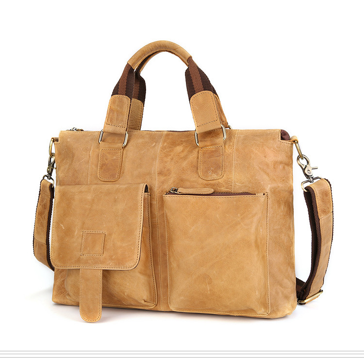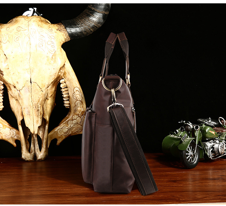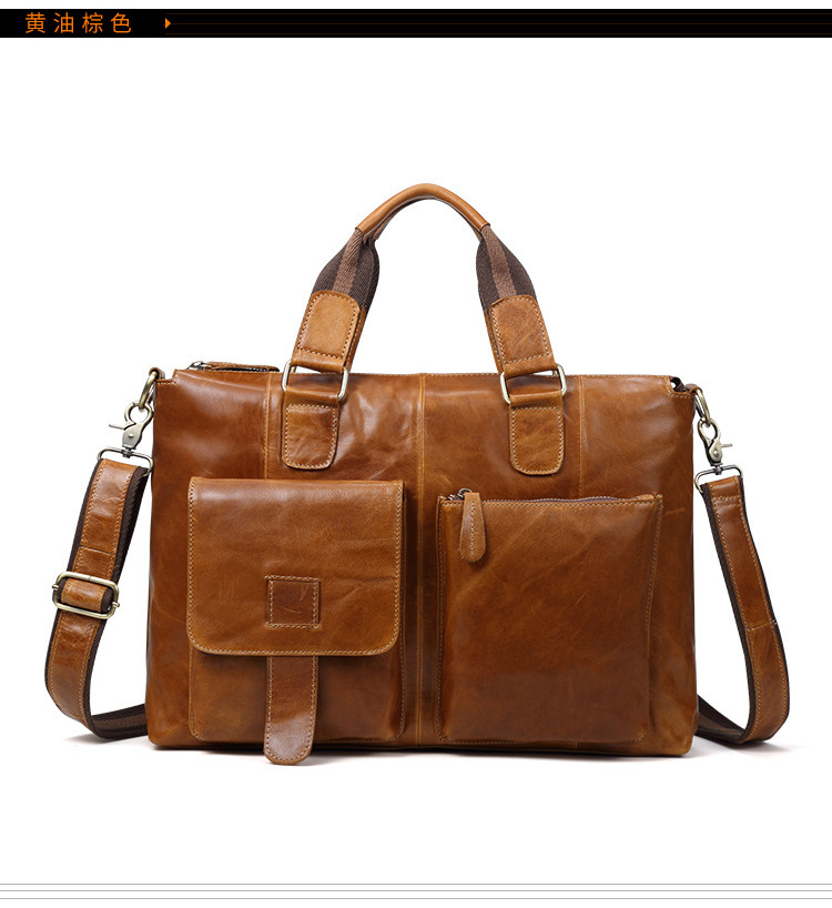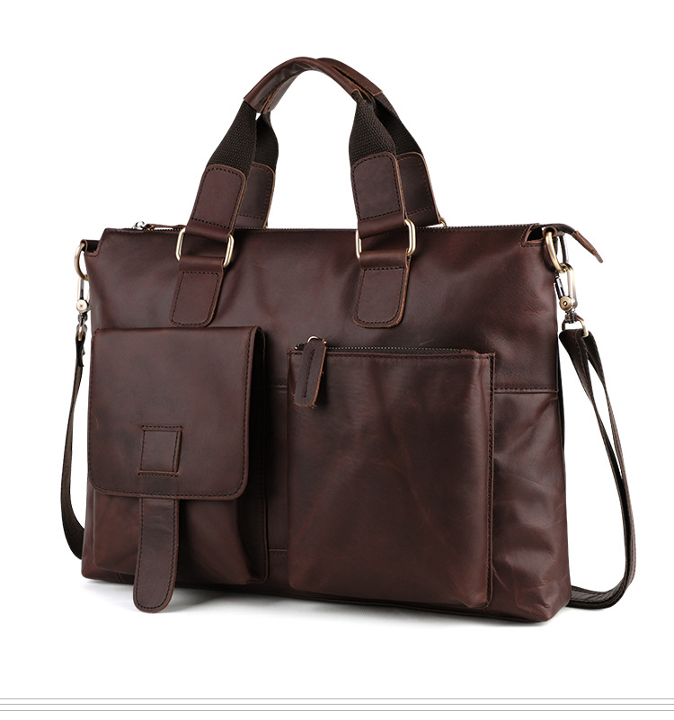 真皮男包高级感疯马皮手提包欧美复古单肩包商务电脑包手提公文包