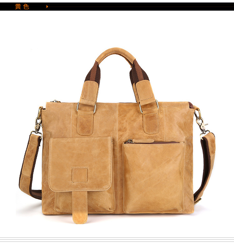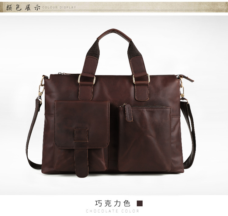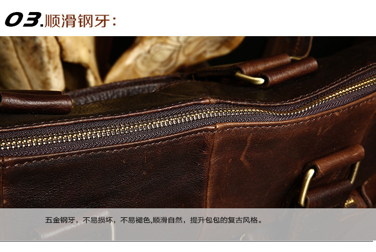 真皮男包高级感疯马皮手提包欧美复古单肩包商务电脑包手提公文包 投诉