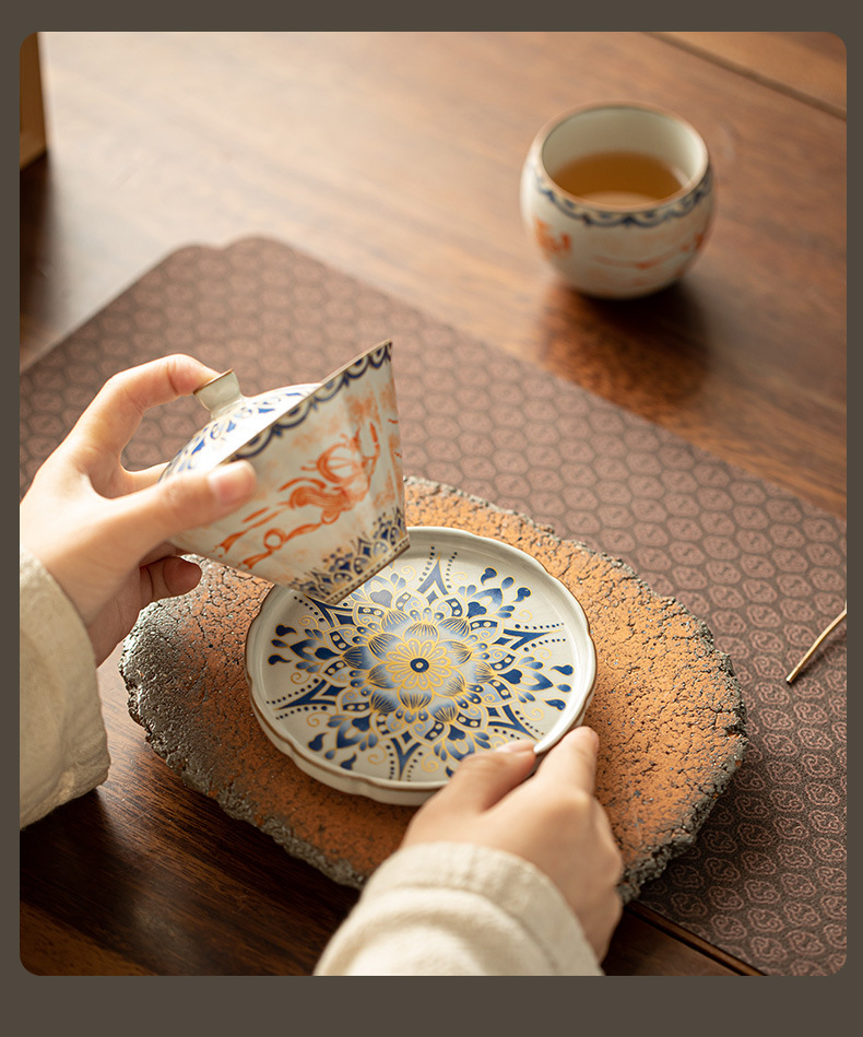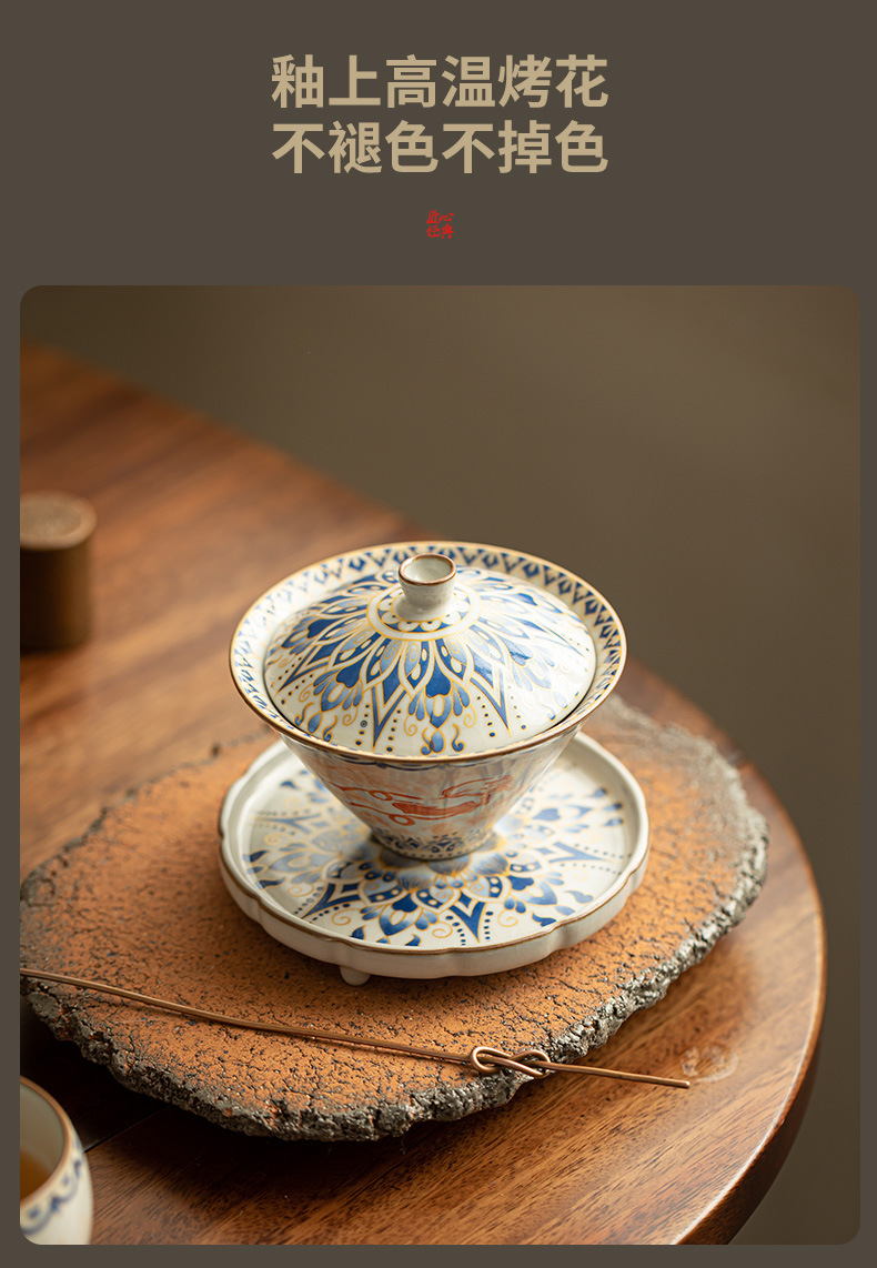 景德镇陶瓷拓片飞天敦煌盖碗功夫茶具茶杯三才盖碗斗笠马蹄盖碗套 投诉