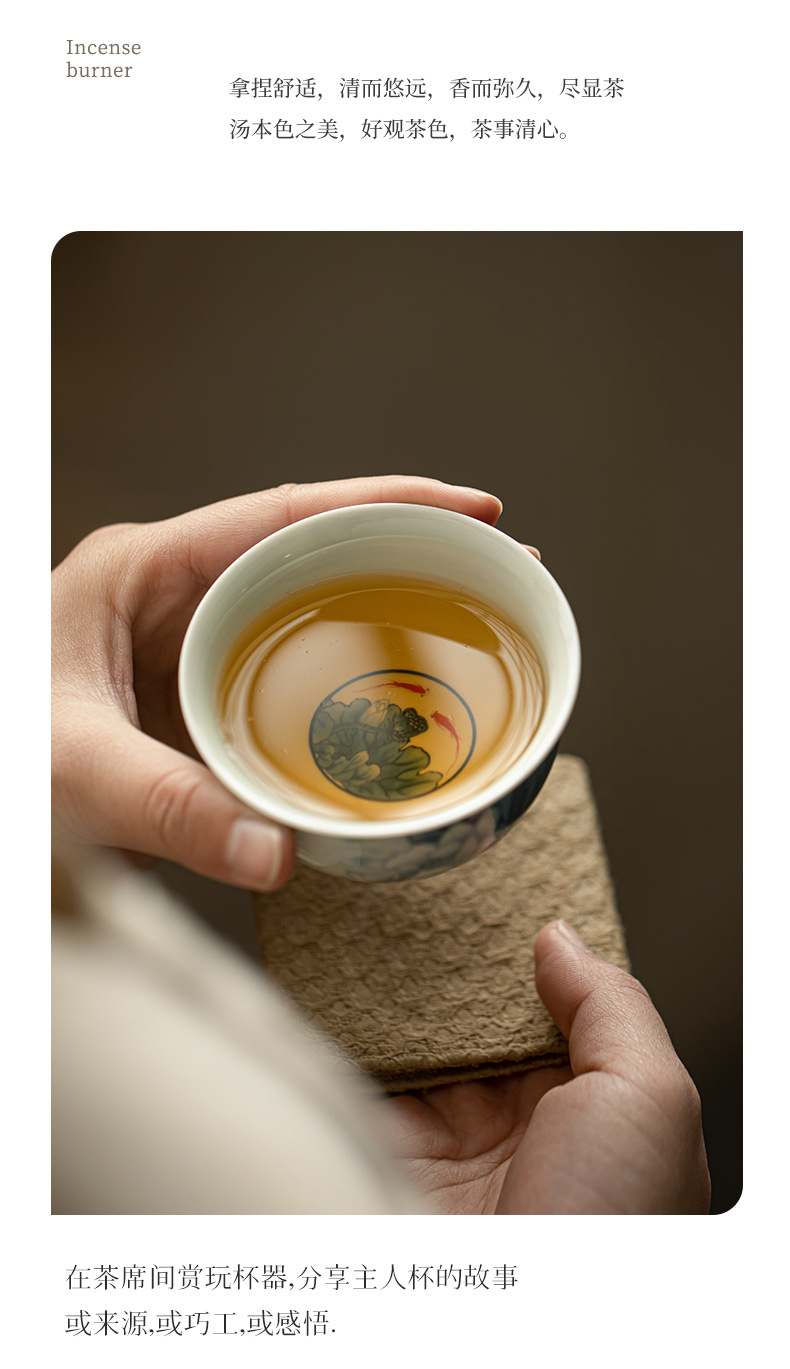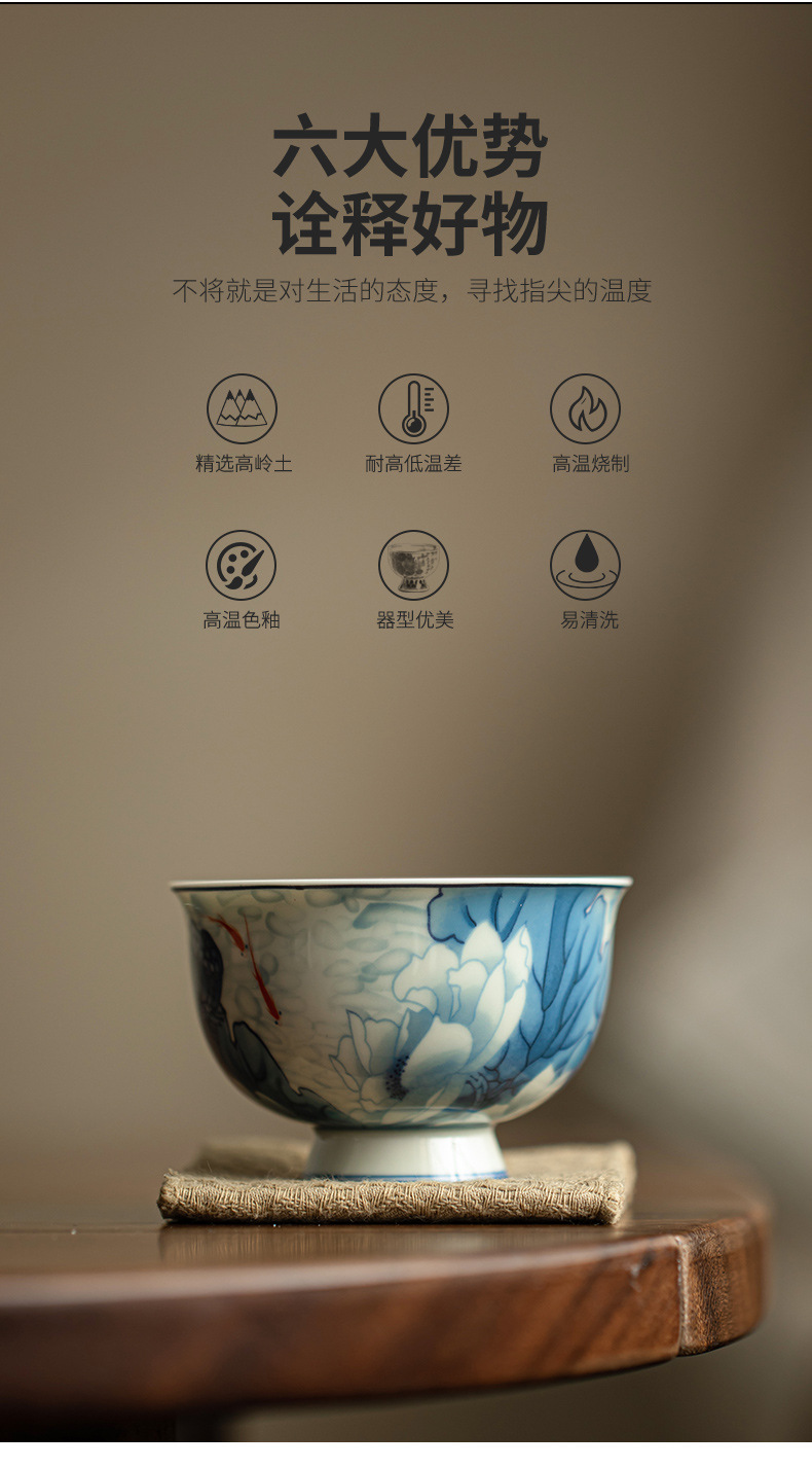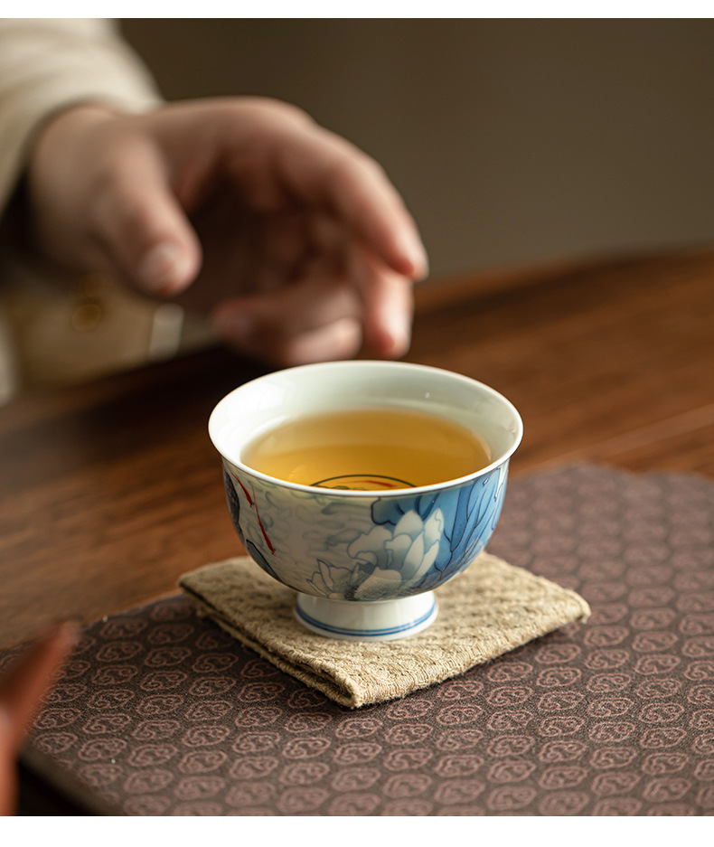 景德镇手工青花茶杯品茗杯主人杯可悬停功夫茶具家用办公陶瓷茶具