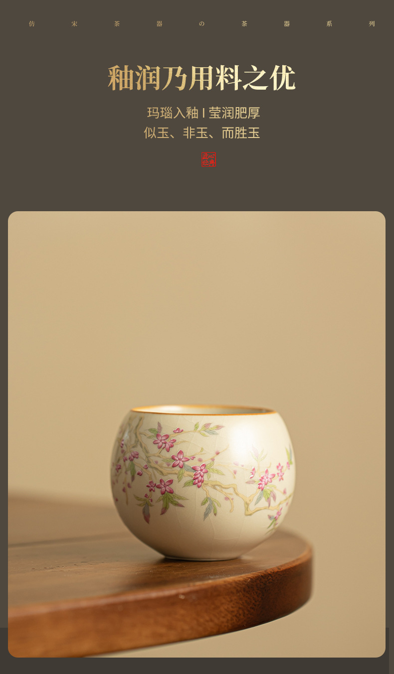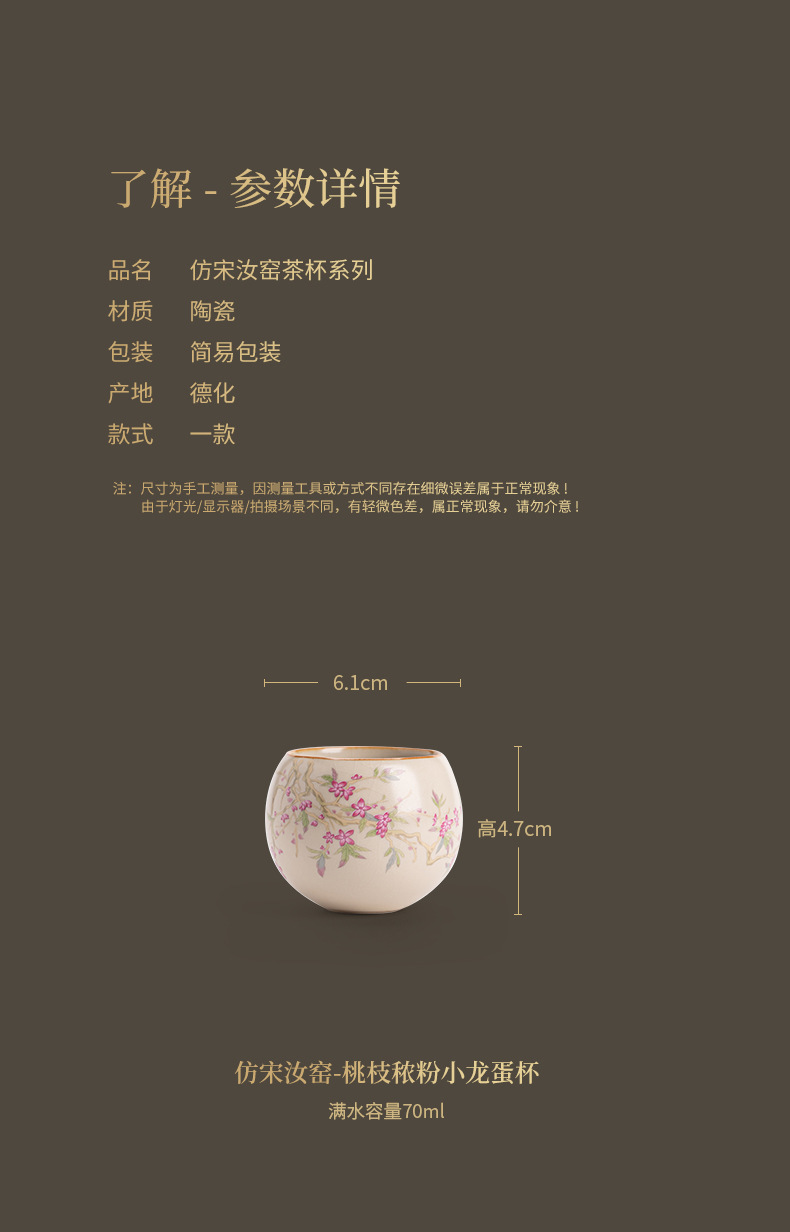 汝窑桃花主人杯陶瓷茶具单杯茶杯龙蛋杯家用办公品茗杯功夫茶具 投诉