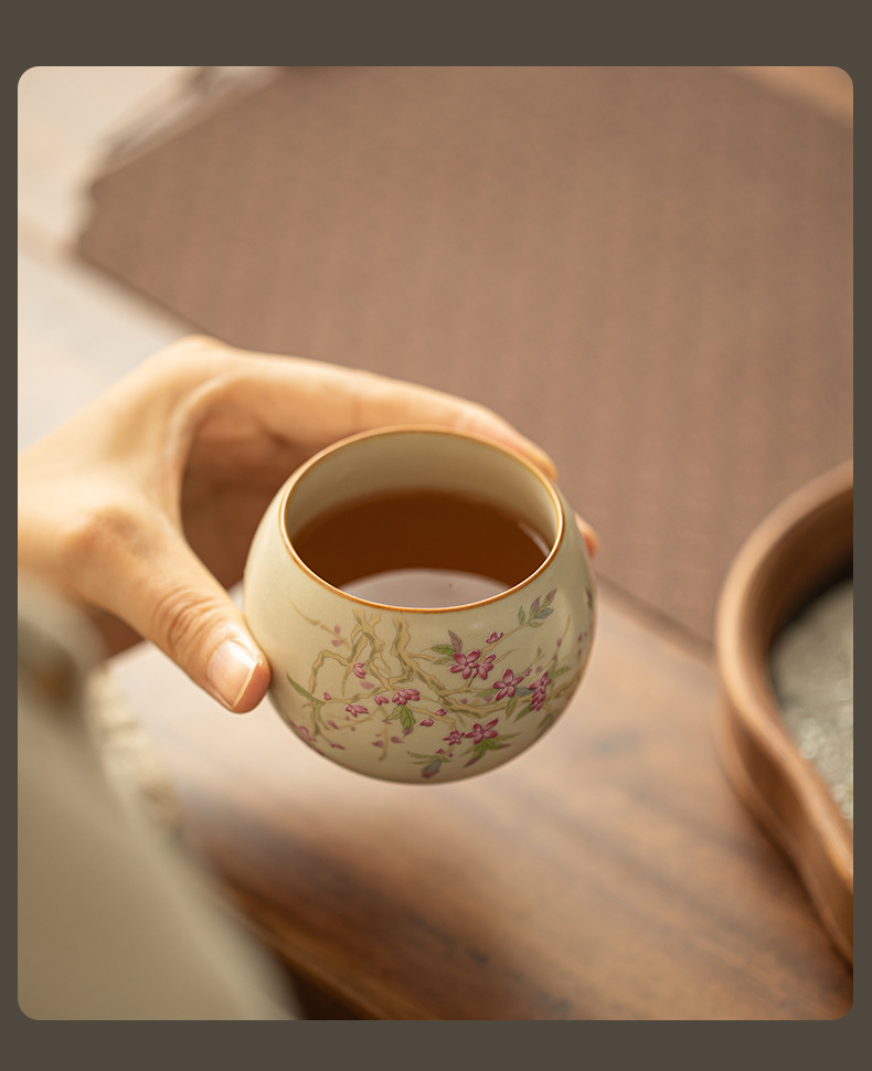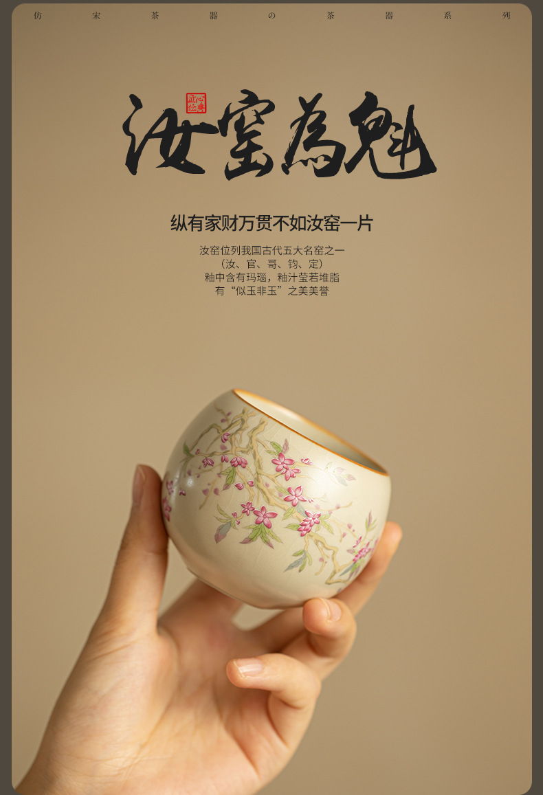 汝窑桃花主人杯陶瓷茶具单杯茶杯龙蛋杯家用办公品茗杯功夫茶具
