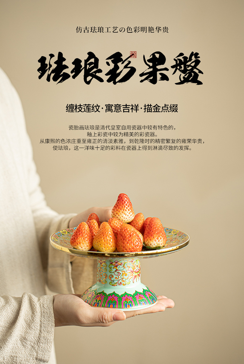 景德镇手工珐琅彩陶瓷高足茶盘壶承客厅家用茶几果盘零食盘点心盘 投诉