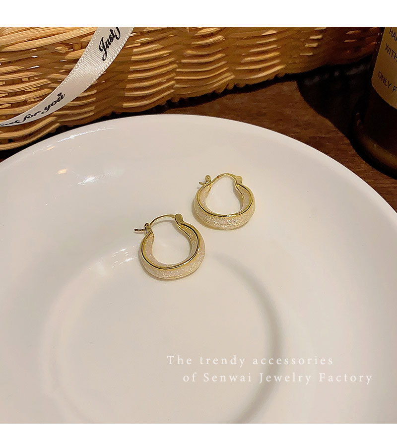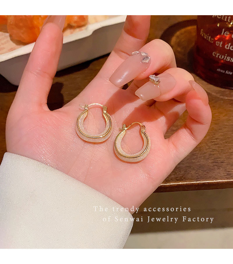 秋冬素圈滴釉白色耳环女轻奢气质高级感耳扣耳圈2025年爆款耳饰品 投诉