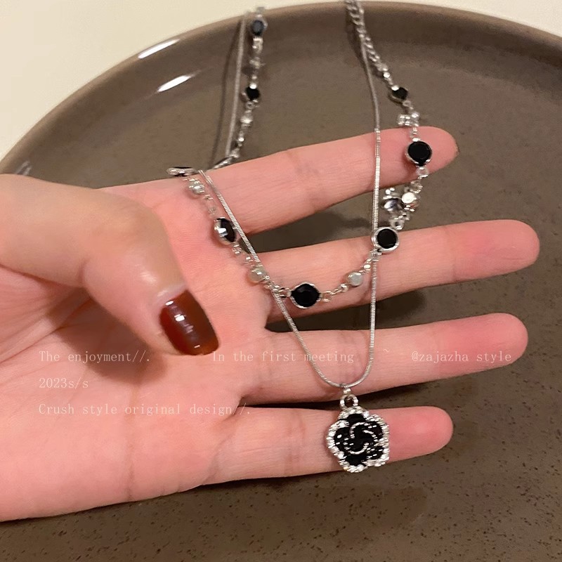 双层叠戴玫瑰花卫衣项链女高级感小众气质毛衣链复古轻奢个性配饰