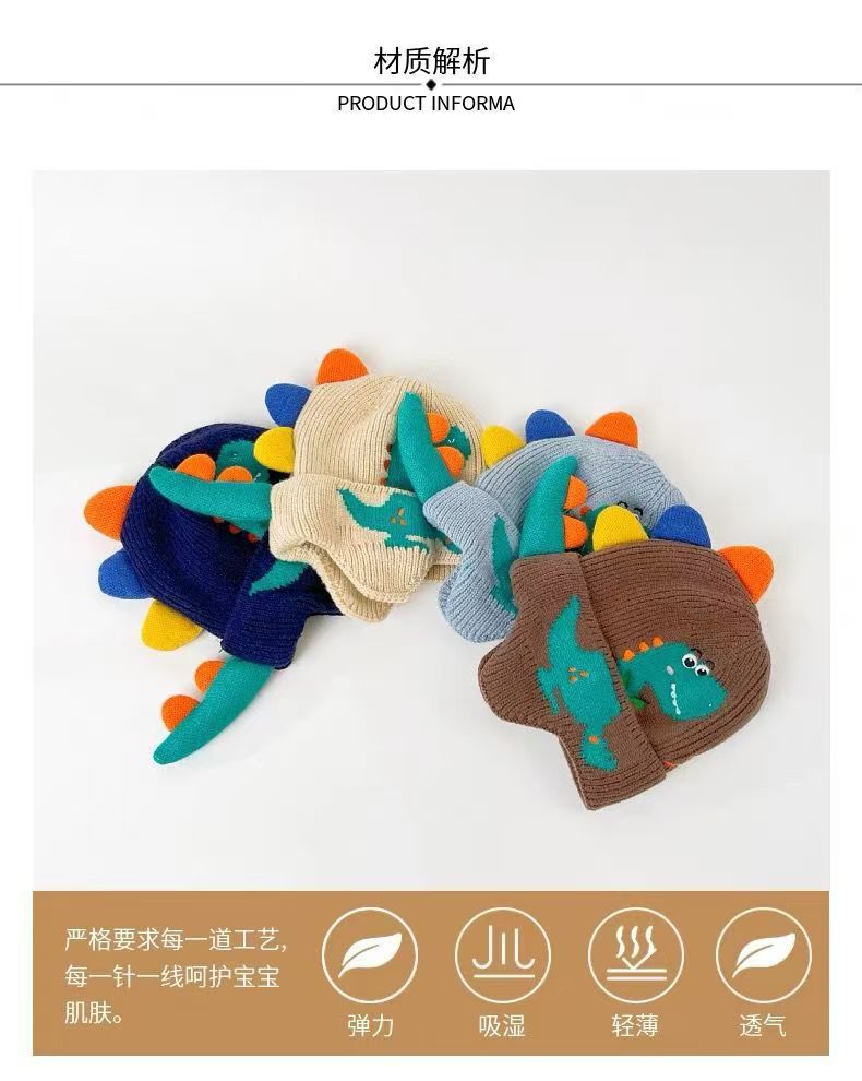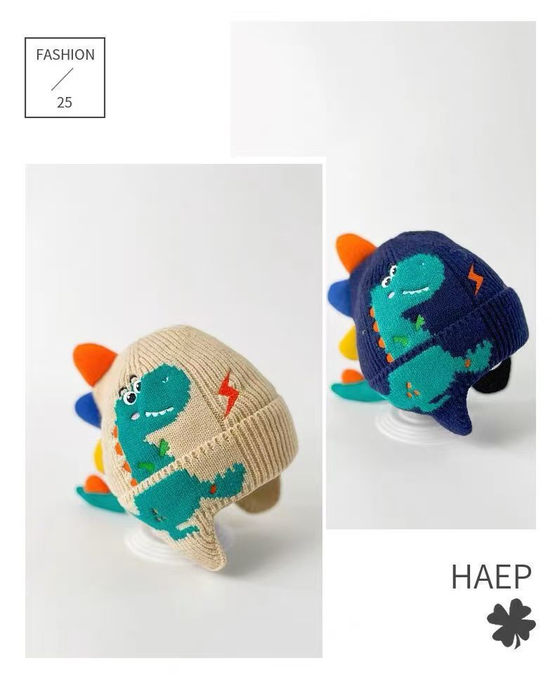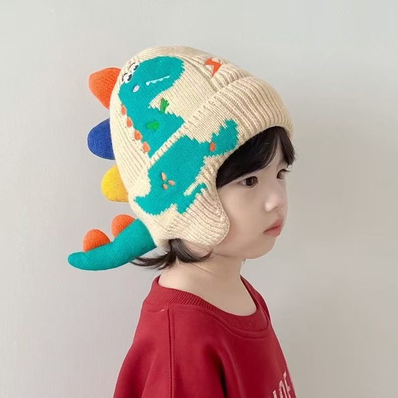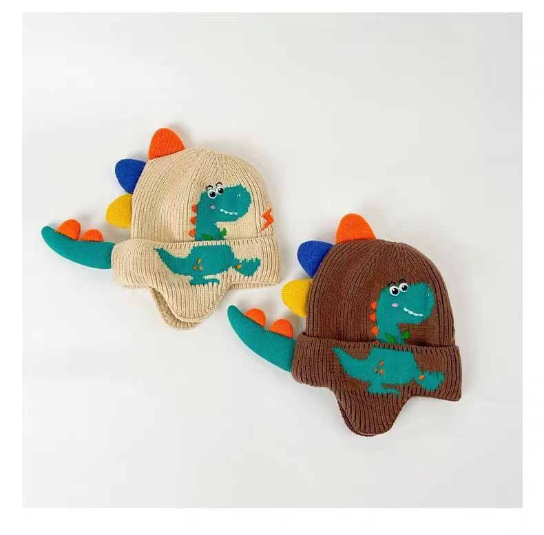 儿童帽子秋冬男童针织毛线帽加厚可爱恐龙超萌女童护耳宝宝保暖帽 English | 投诉