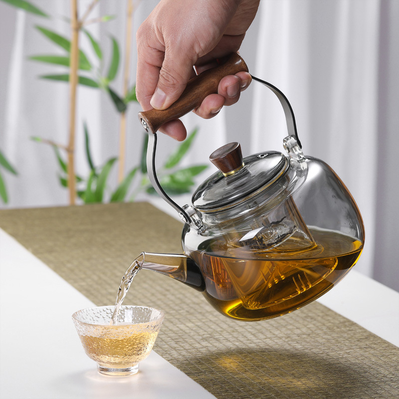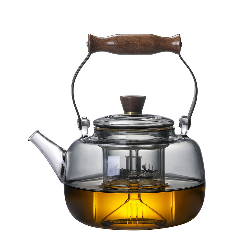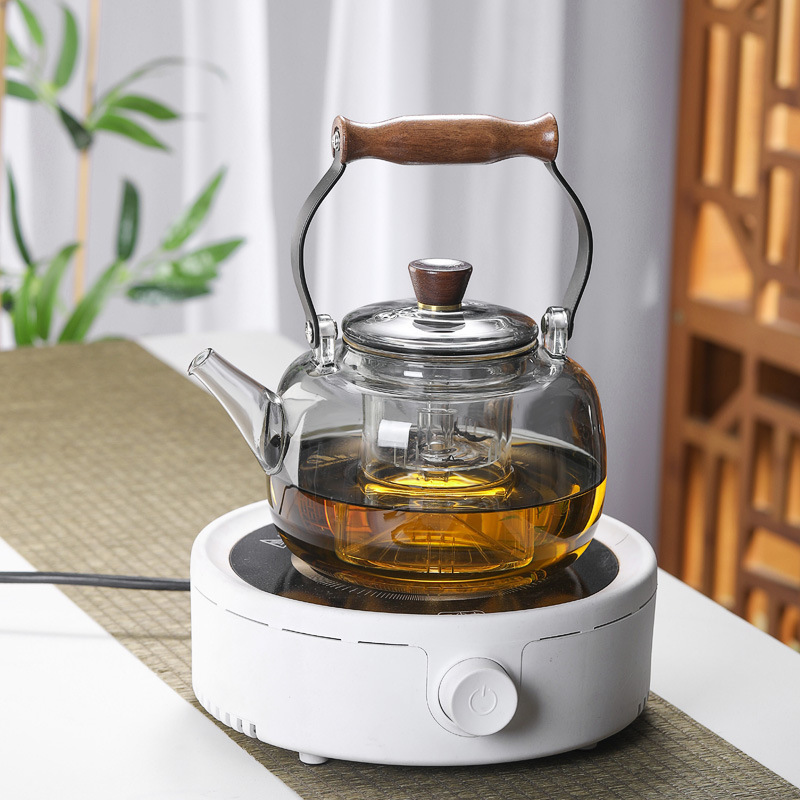 加厚玻璃煮茶壶电陶炉加热蒸煮提梁壶烧水壶竹木煮茶器耐高温茶壶