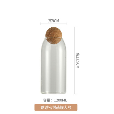 家用玻璃储物罐收纳瓶 软木塞圆球盖五谷杂粮密封罐多款式茶叶罐