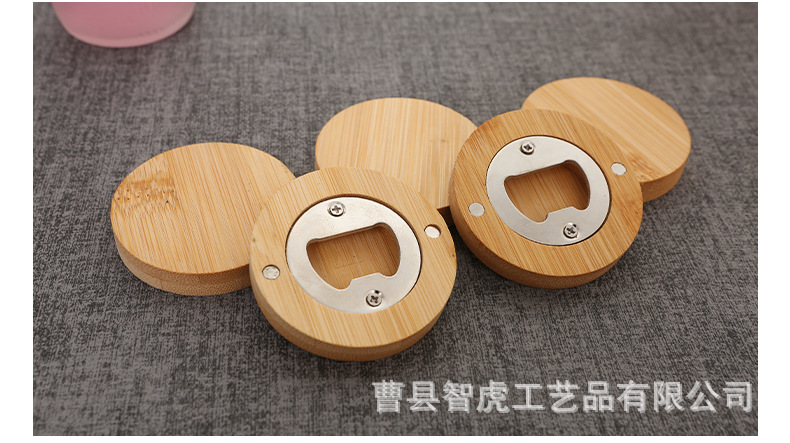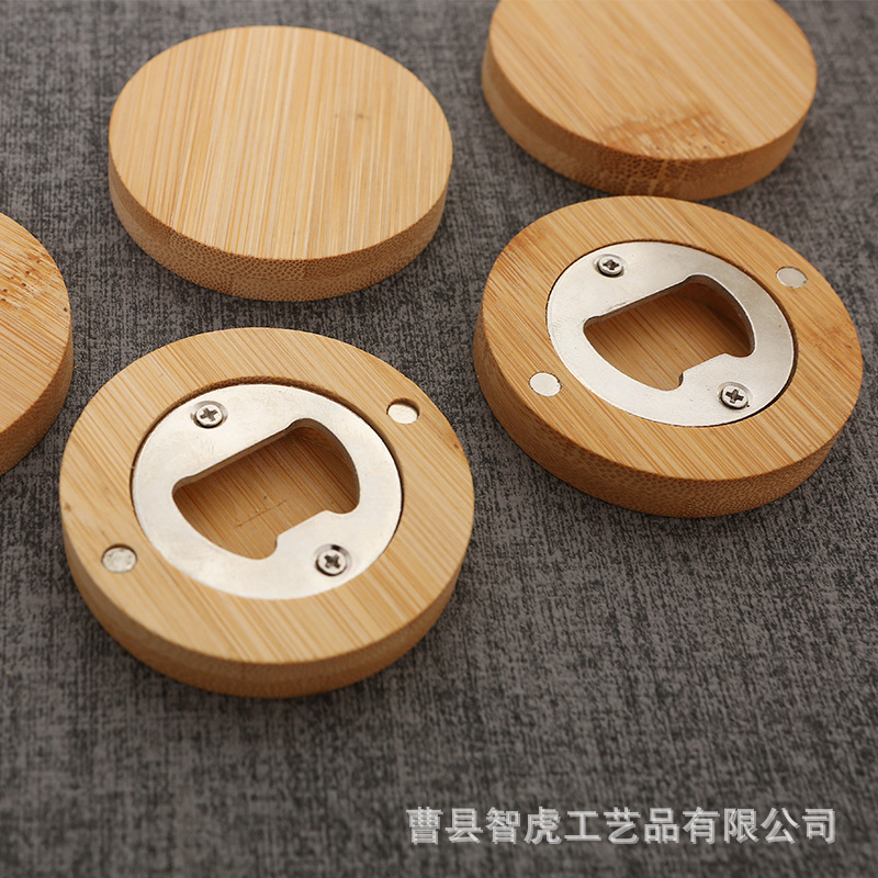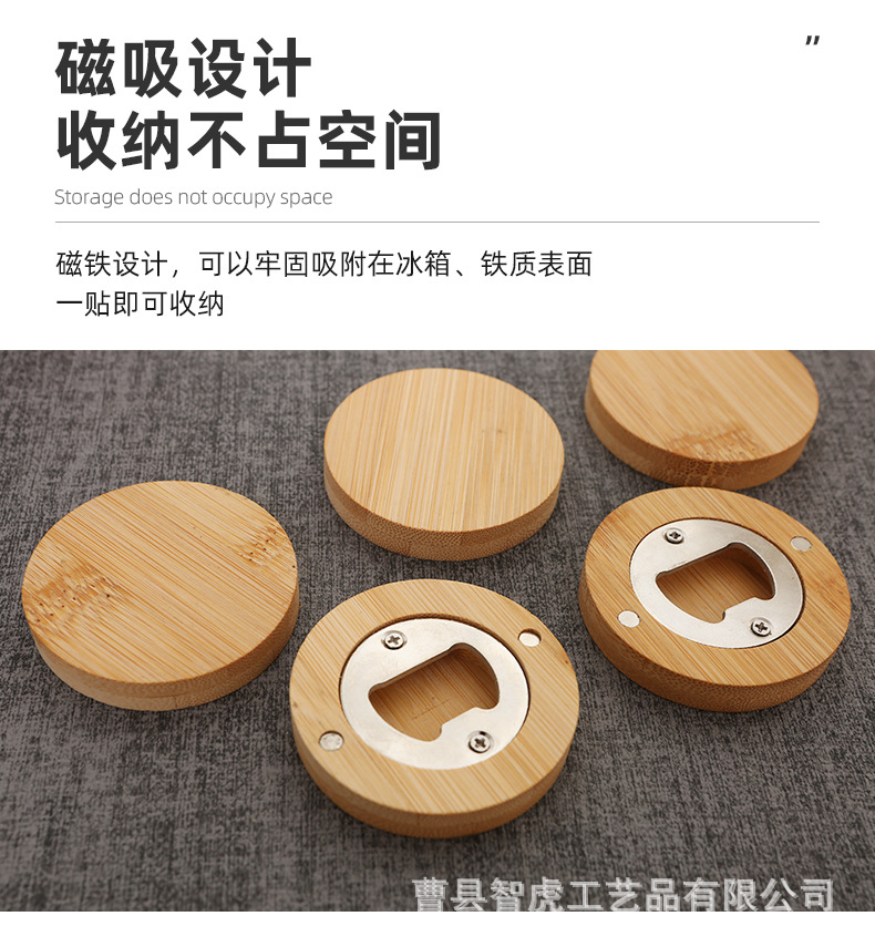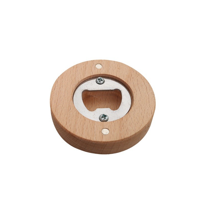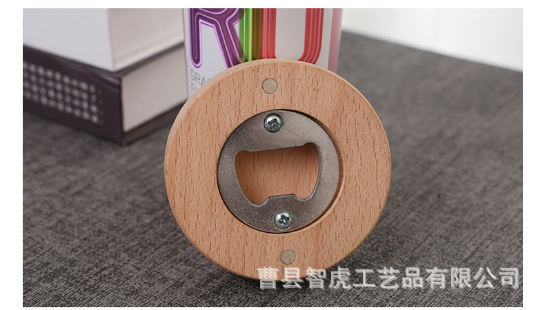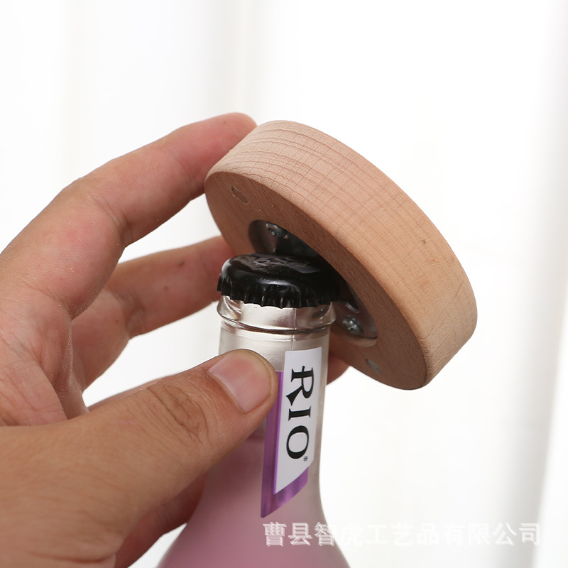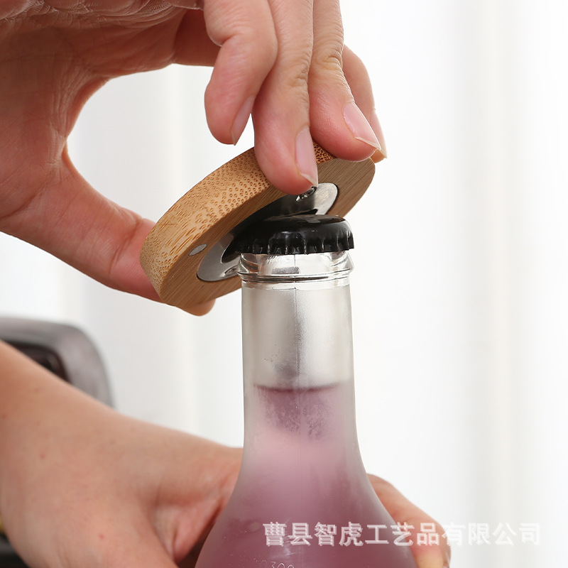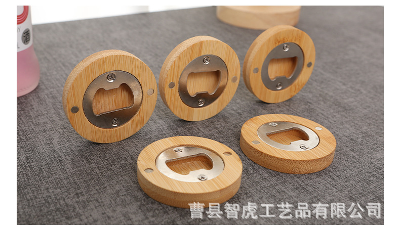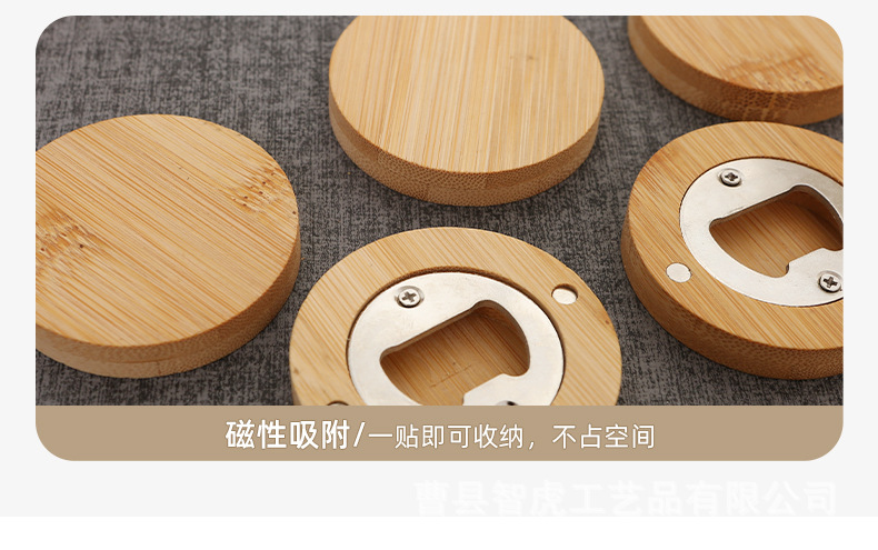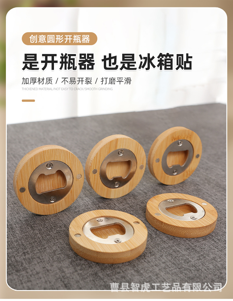 竹木开瓶器 创意家用圆形啤酒开瓶器冰箱贴磁吸啤酒瓶起子