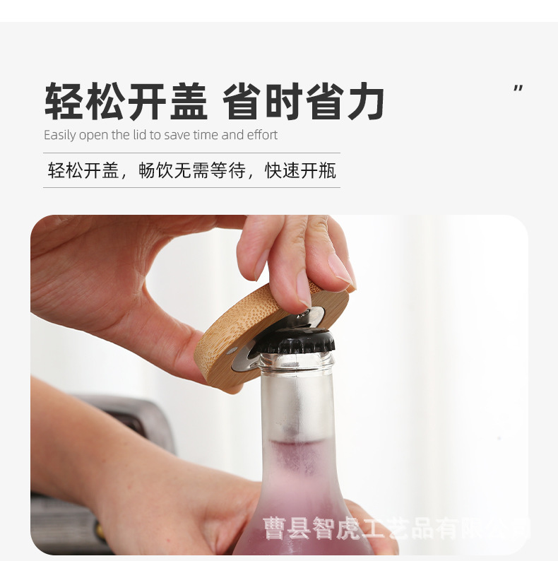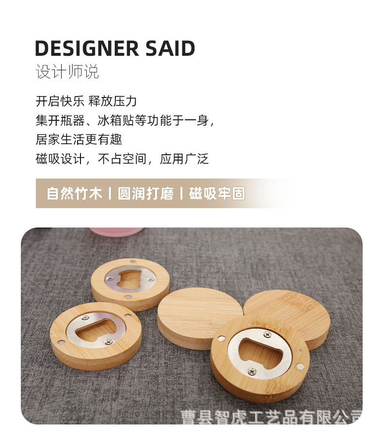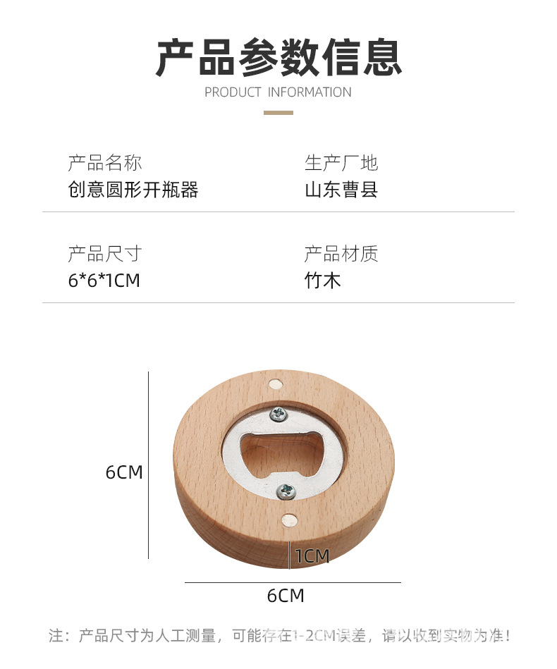竹木开瓶器 创意家用圆形啤酒开瓶器冰箱贴磁吸啤酒瓶起子 投诉