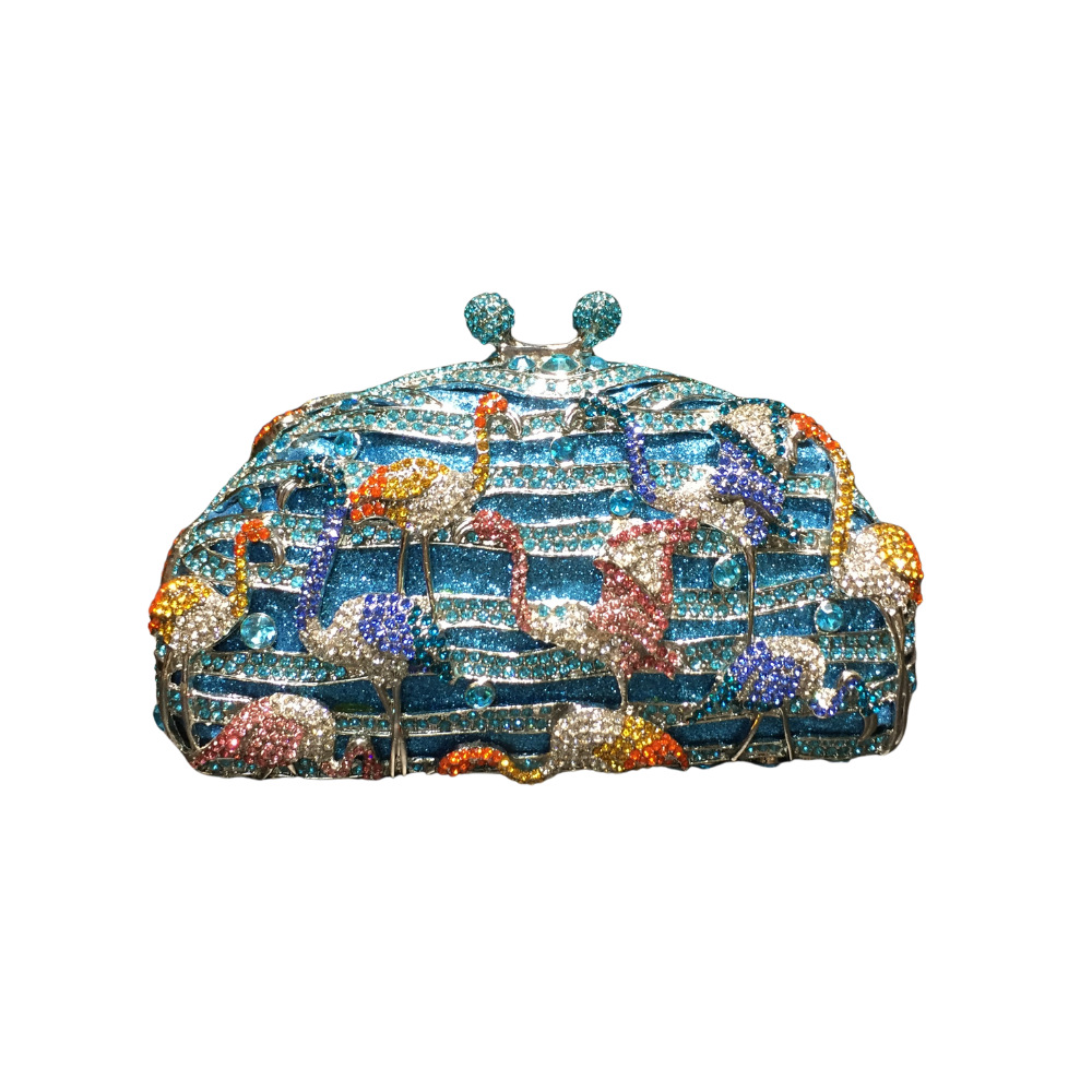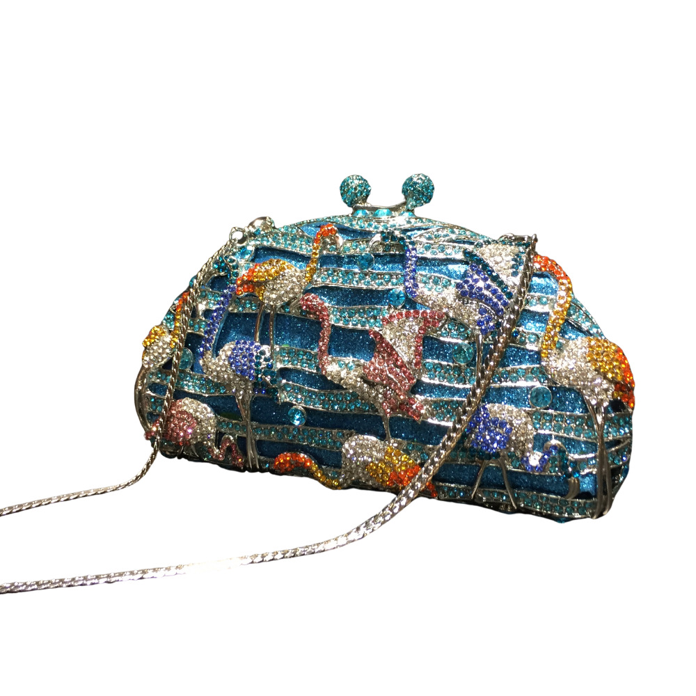 货号: 107火烈鸟 材质: 合金 适用场景: 日常搭配 里料质地: 合成革 箱包潮流款式: 镶钻晚宴包 包内部结构: 证件袋 箱包形状: 火烈鸟 流行元素: 镶钻 开盖方式: 磁扣 风格: 跨境风潮 品牌: 戴玮 硬度: 硬 外袋种类: 立体袋 颜色: 蓝色 有可授权的自有品牌: 是 有无夹层: 有 重量: 0.3 kg/个
