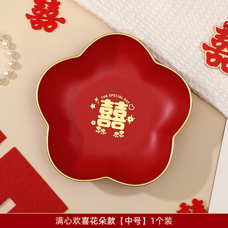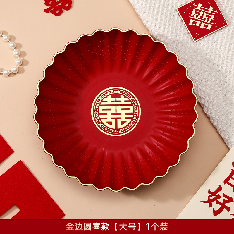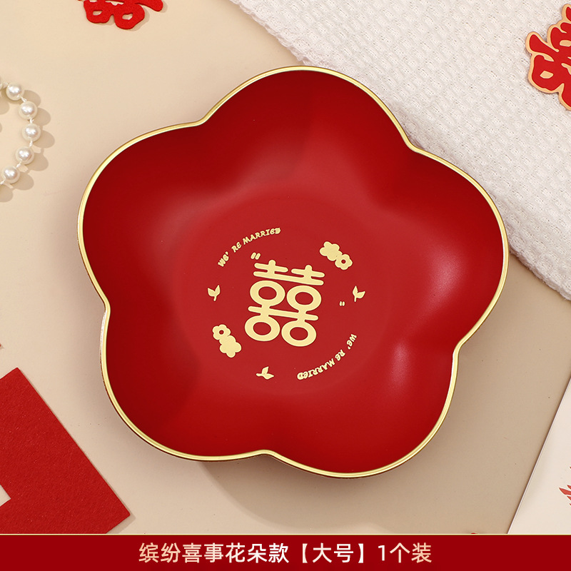 结婚果盘客厅专用红色喜糖盘婚礼用的喜盘子订婚网红干果盘摆件