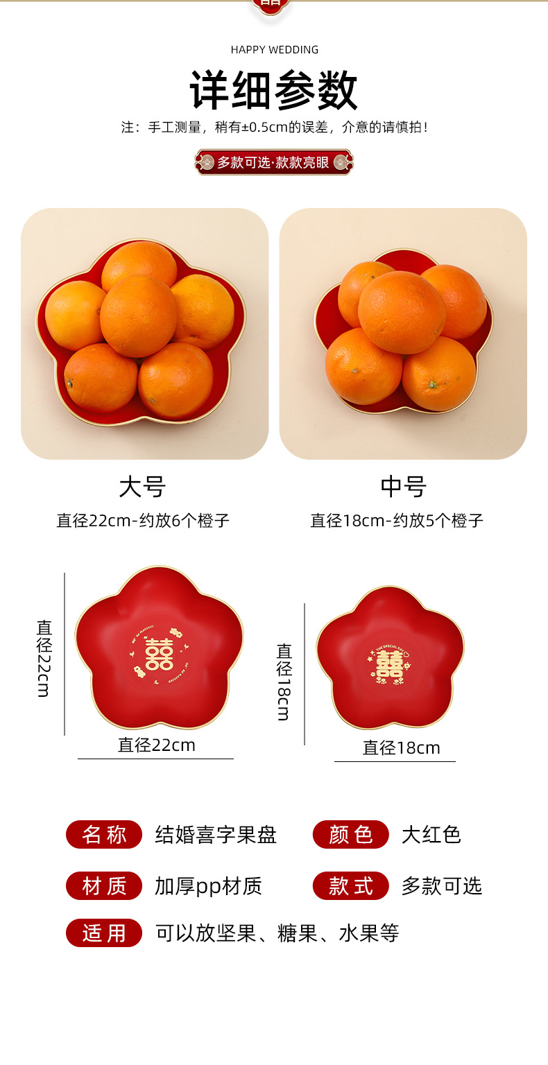 结婚果盘客厅专用红色喜糖盘婚礼用的喜盘子订婚网红干果盘摆件 投诉