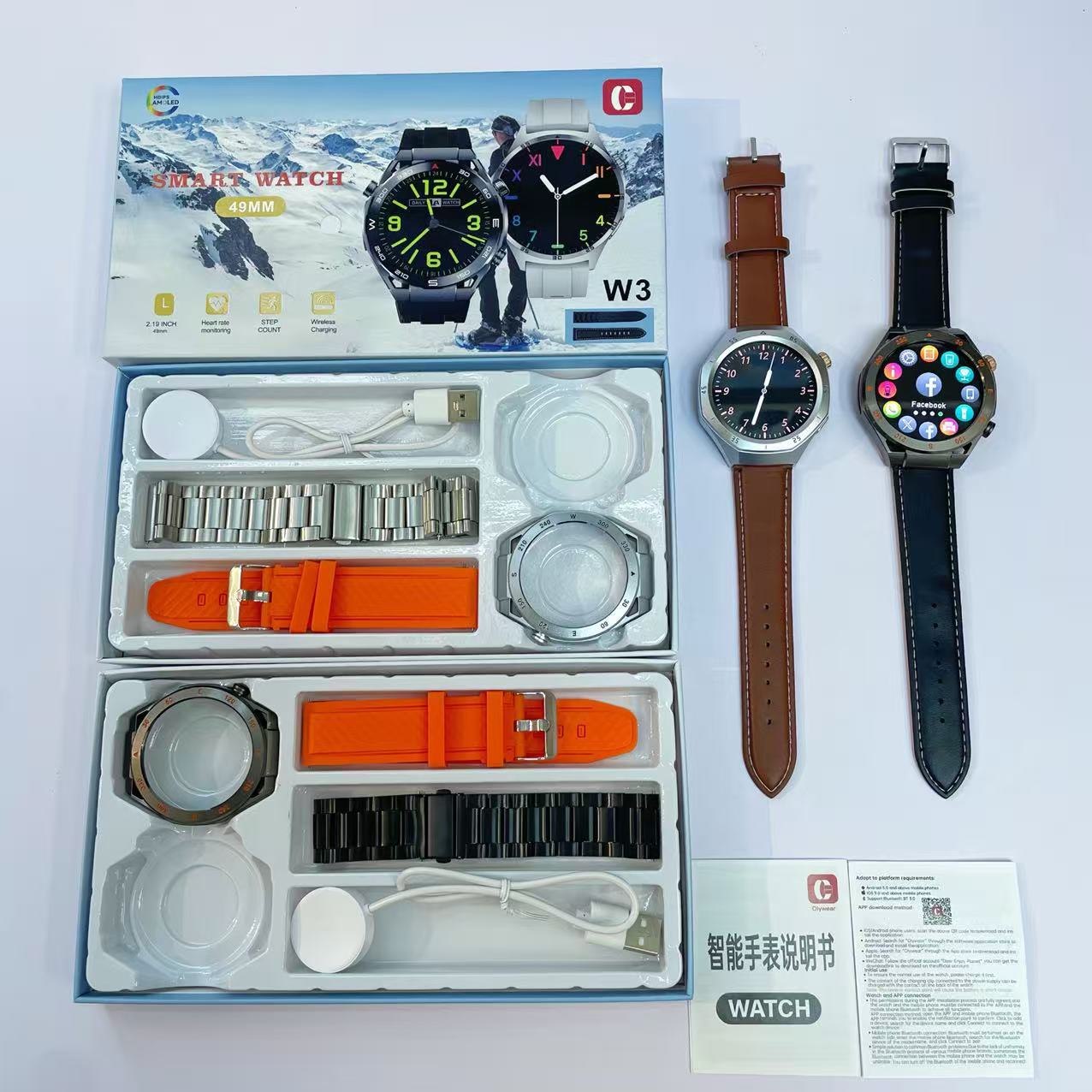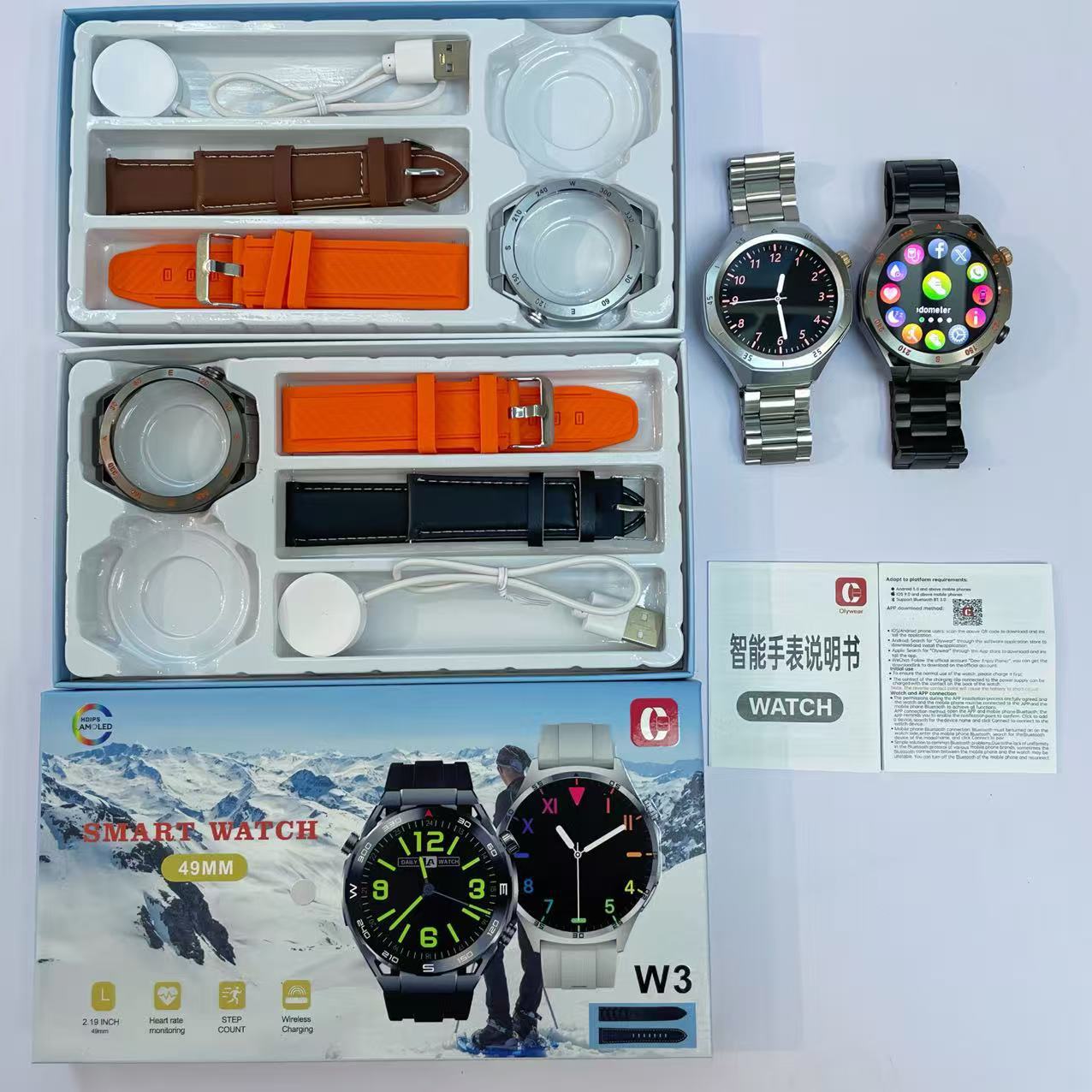 W3高清大屏智能手表蓝牙通话 3条表带 运动血压心率 睡眠健康监测