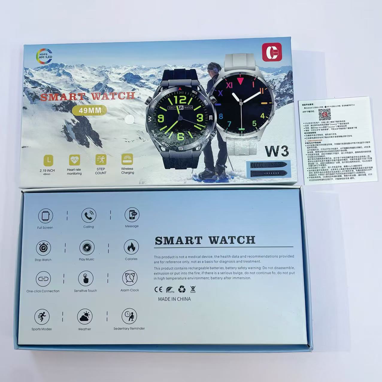W3高清大屏智能手表蓝牙通话 3条表带 运动血压心率 睡眠健康监测 English | 投诉