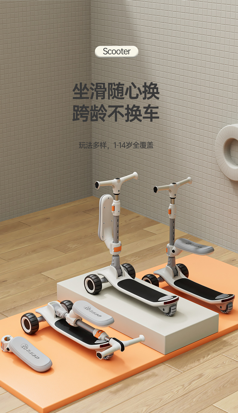儿童滑板车1-6-12岁男女宝宝可坐可滑溜溜车可折叠踏板车儿童玩具 投诉
