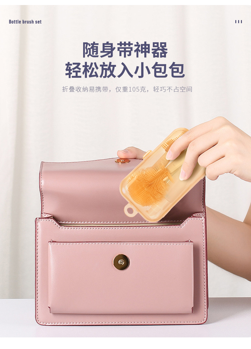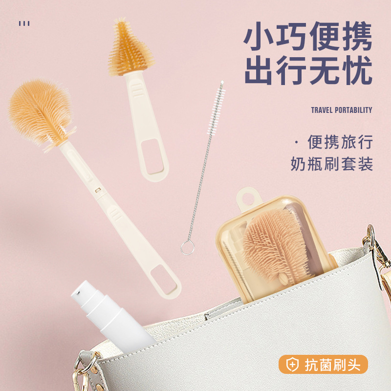 (跨境专供)婴儿硅胶便携奶瓶刷套装宝宝清洗刷清洁刷旅行装收纳
