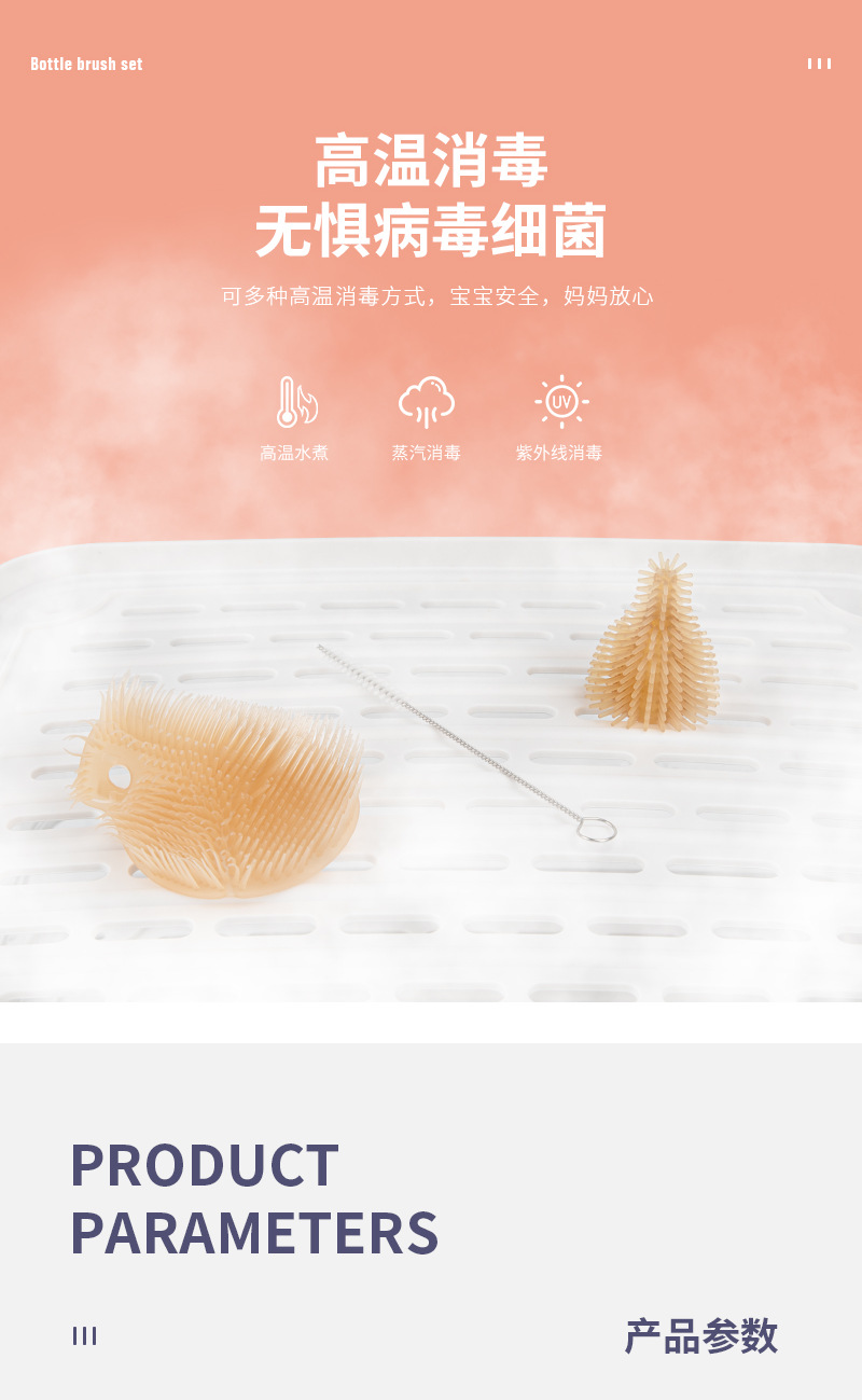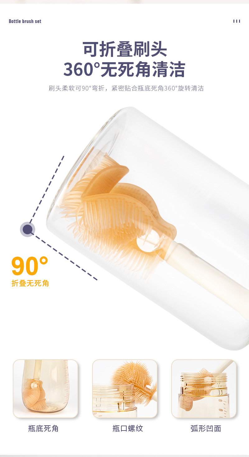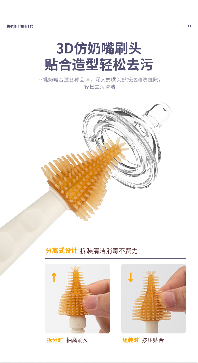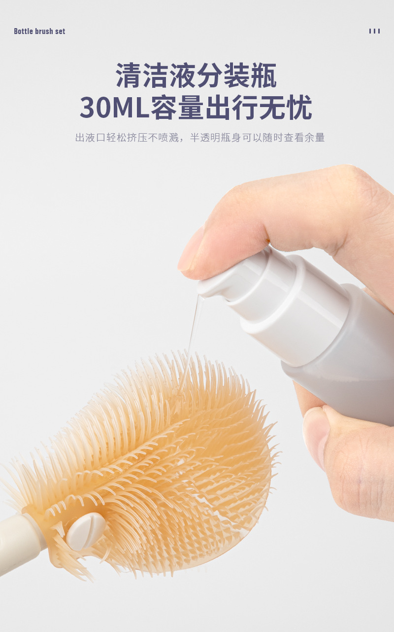 (跨境专供)婴儿硅胶便携奶瓶刷套装宝宝清洗刷清洁刷旅行装收纳 English | 投诉