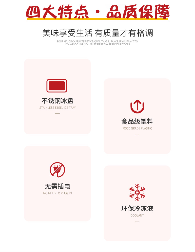 1.本产品无需用电!物理制冰。