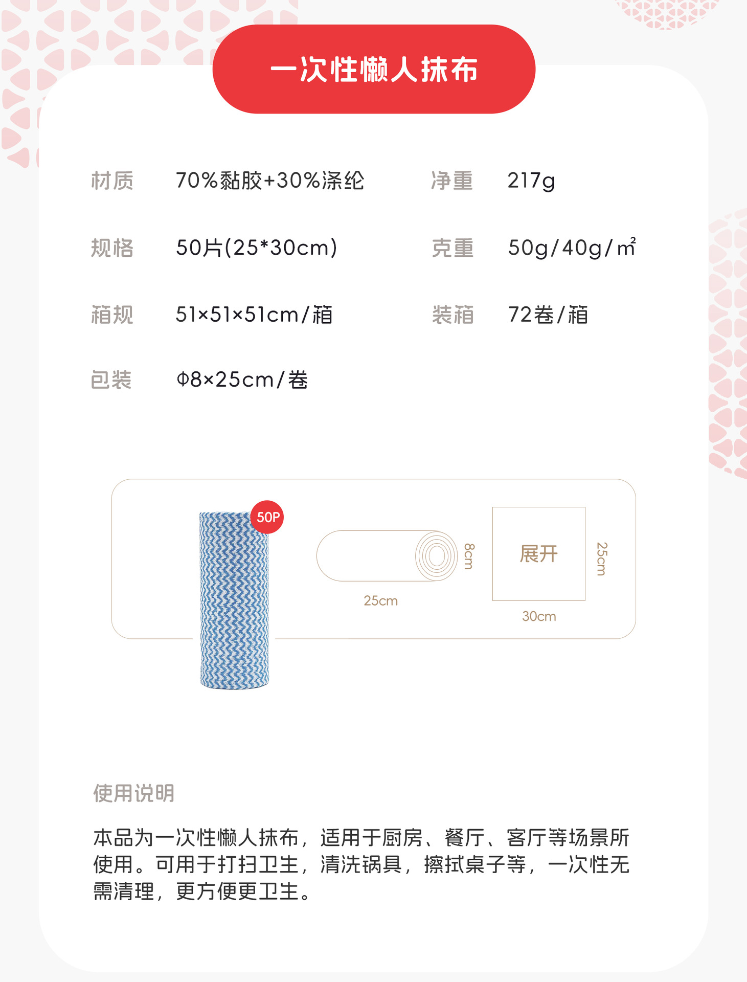 | 木浆复合卷25*30cm 50片/卷(40g/㎡) | ¥1770 | 998份可售 |