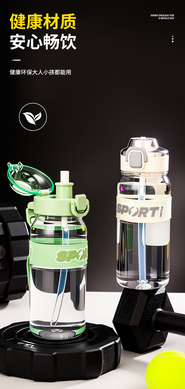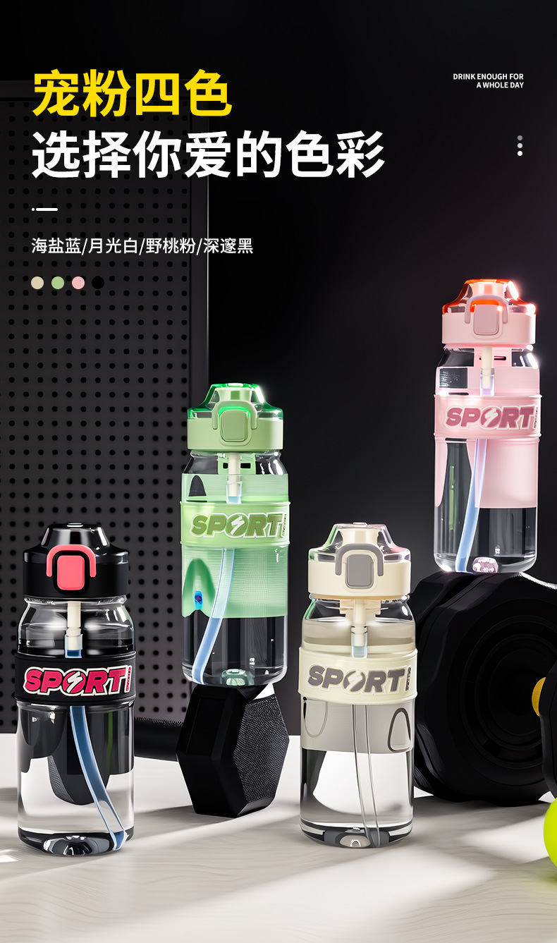 透明吸管水杯便携男女学生大容量夏季户外tritan运动水壶塑料杯子