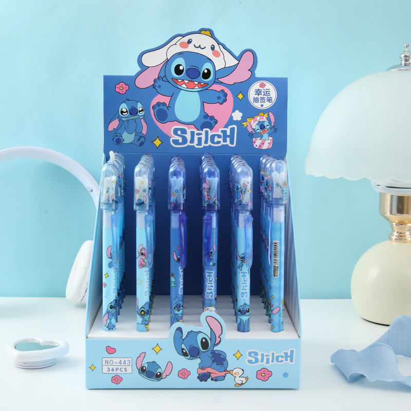 新款史迪奇幸运求签中性笔 可爱卡通摇摇乐金榜提名可擦笔水笔0.5