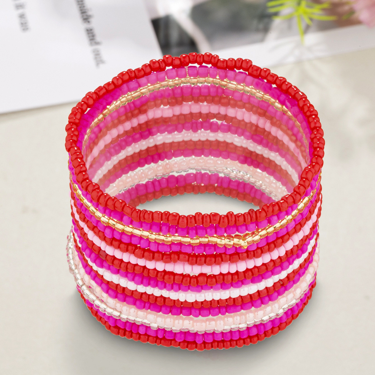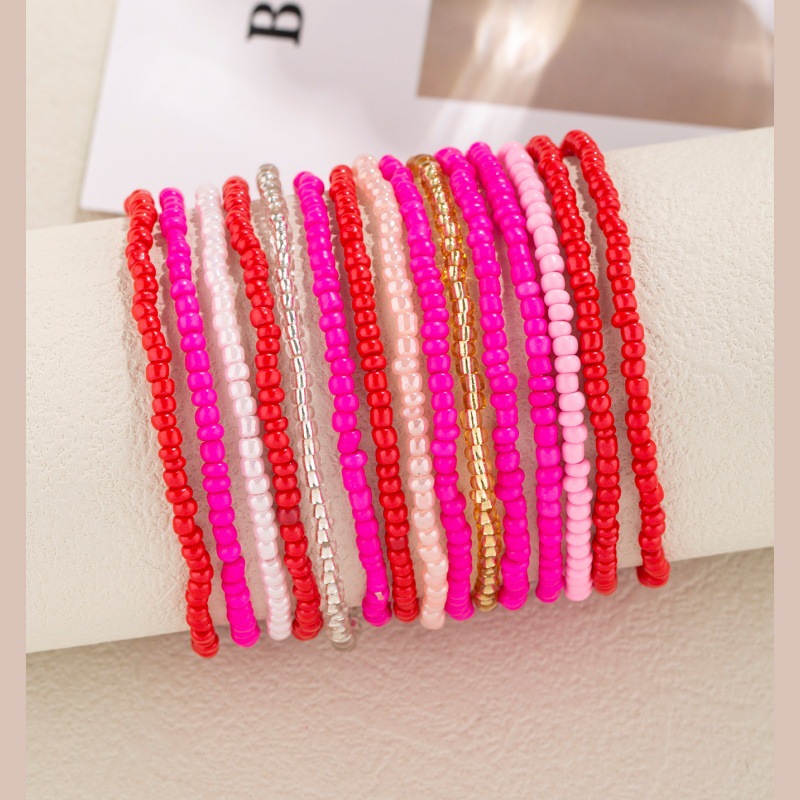 热销元气少女粉色米珠弹力绳手串百搭多巴胺色小米珠多层手链手饰