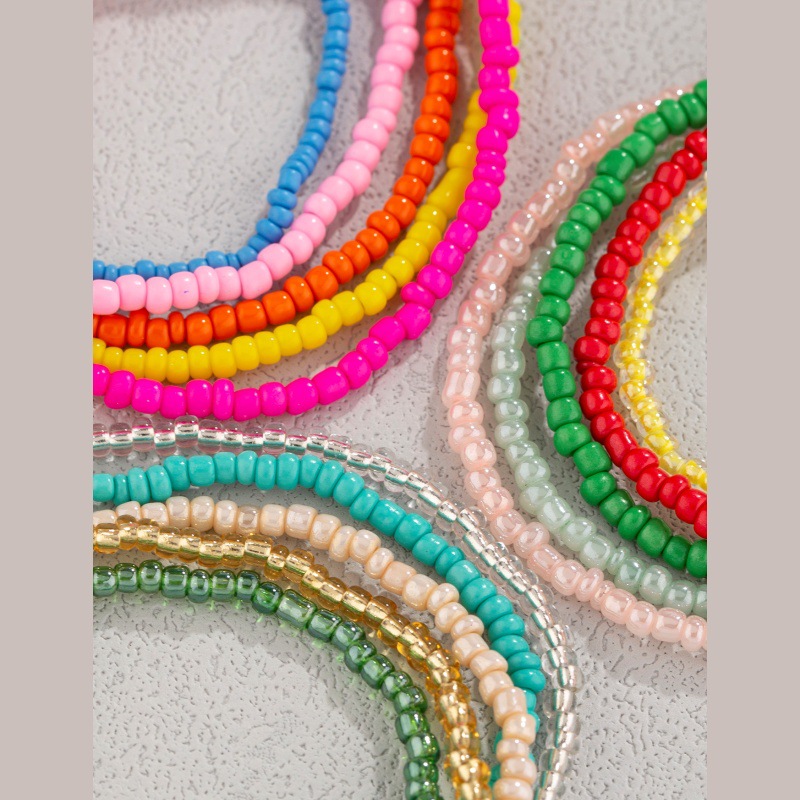 亚马逊热卖波西米亚风彩虹米珠多层手链简约百搭彩色米珠弹力手串 投诉