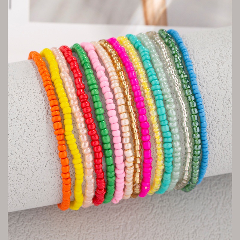 亚马逊热卖波西米亚风彩虹米珠多层手链简约百搭彩色米珠弹力手串