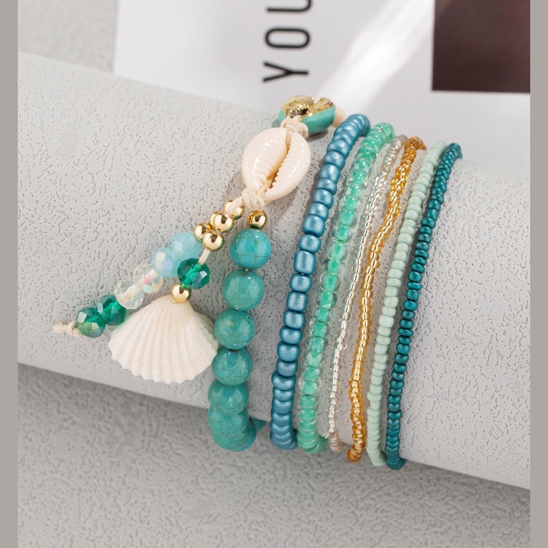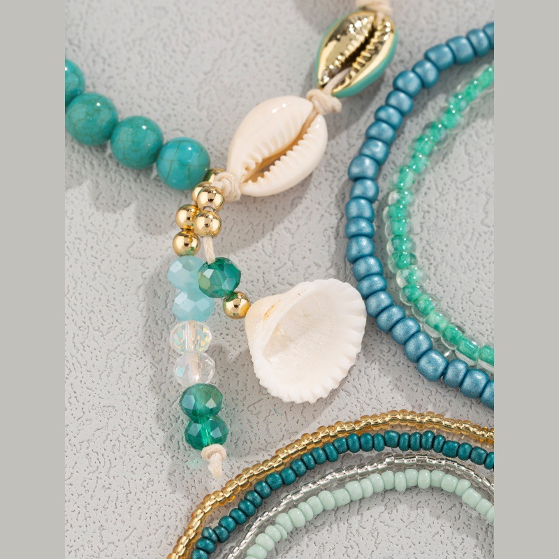 甜美多巴胺海洋风贝壳水晶吊坠米珠脚串海蓝米珠海螺贝壳时尚脚链