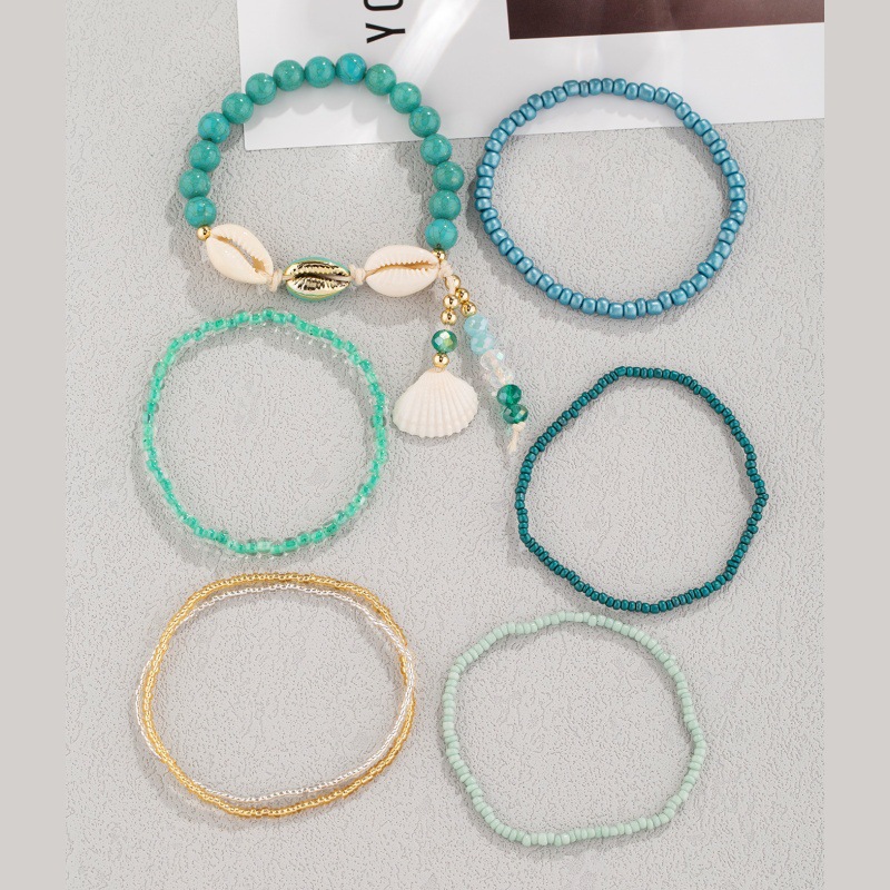 甜美多巴胺海洋风贝壳水晶吊坠米珠脚串海蓝米珠海螺贝壳时尚脚链 投诉