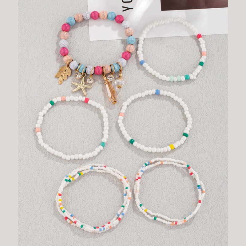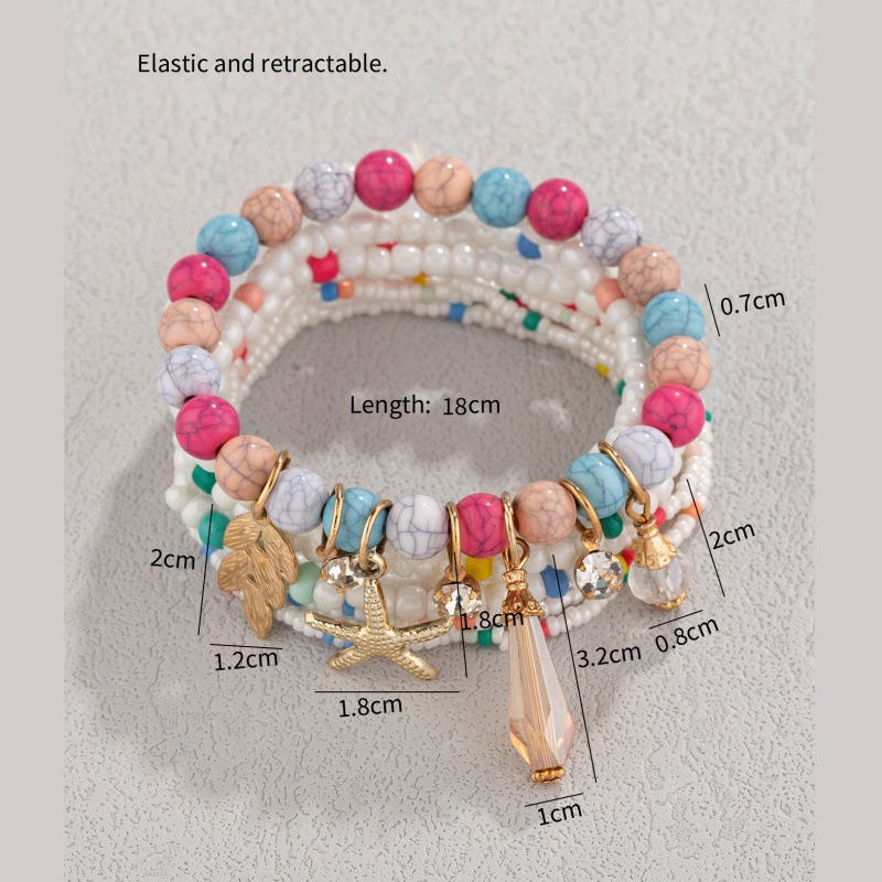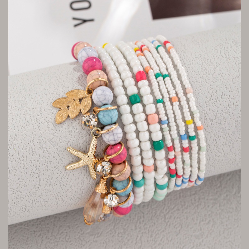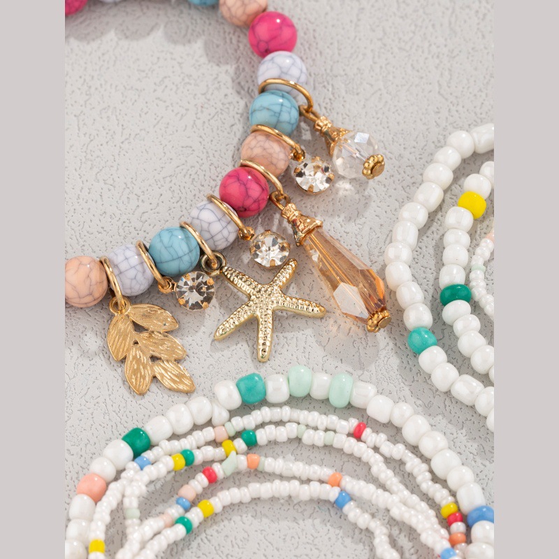 波西米亚海星橄榄枝水滴吊坠多层米珠脚链龟裂石米珠多元素脚链