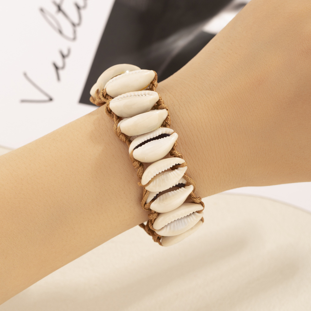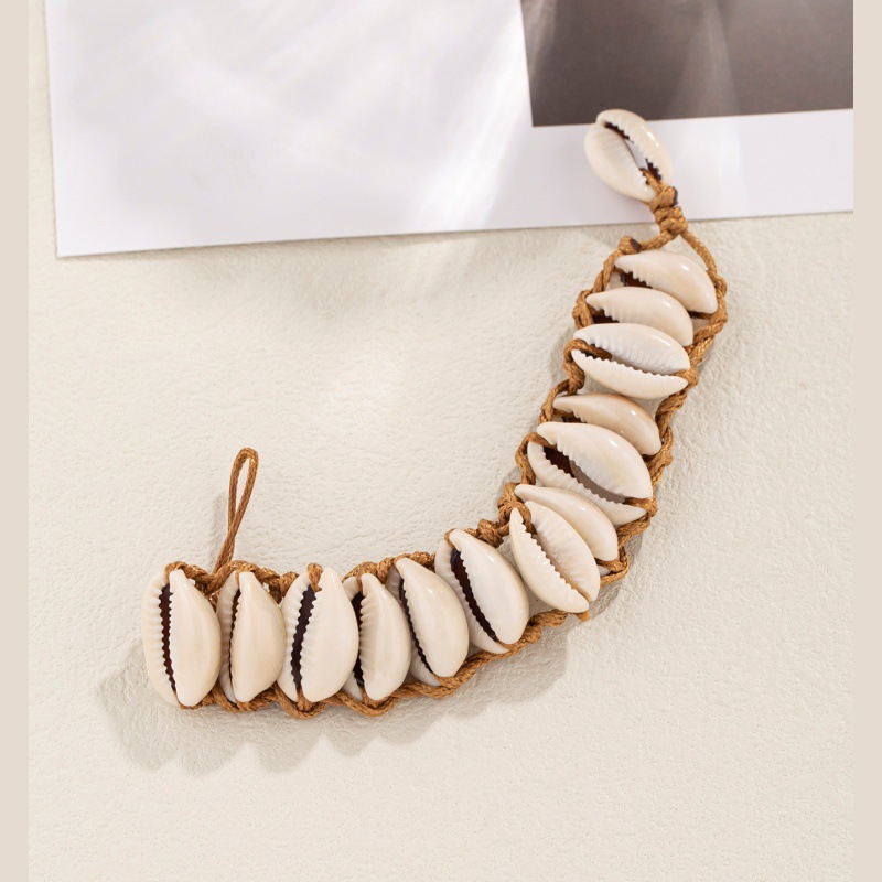 亚马逊个性创意手工编织天然贝壳手绳波西米亚风海螺编织手绳手链