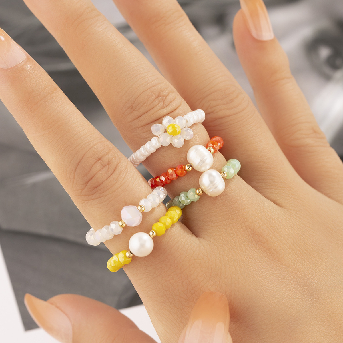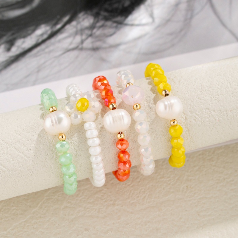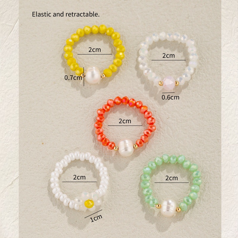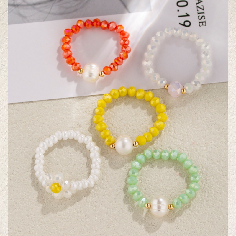 小清新糖果米珠珍珠戒指奶油甜美风珍珠米珠指环可爱雏菊米珠戒指