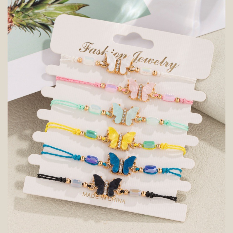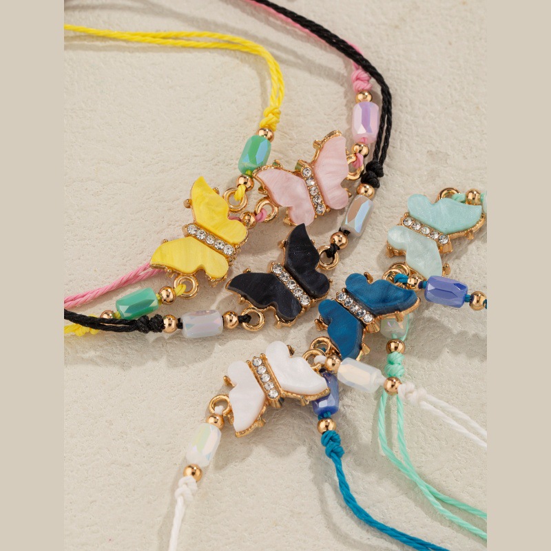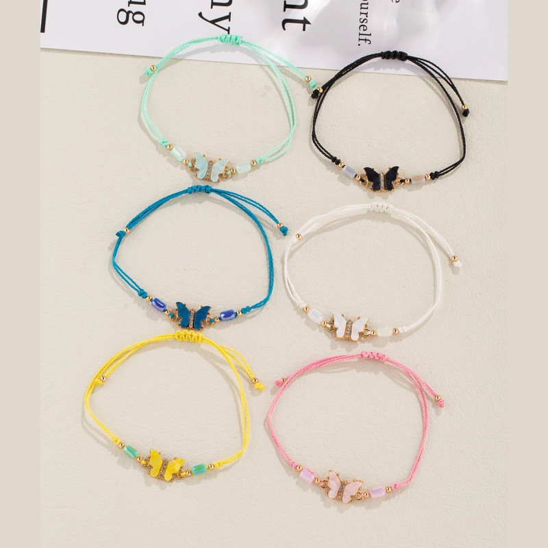 速卖通跨境爆款滴油蝴蝶琉璃珠手工编织手绳百搭情侣手链手串饰品