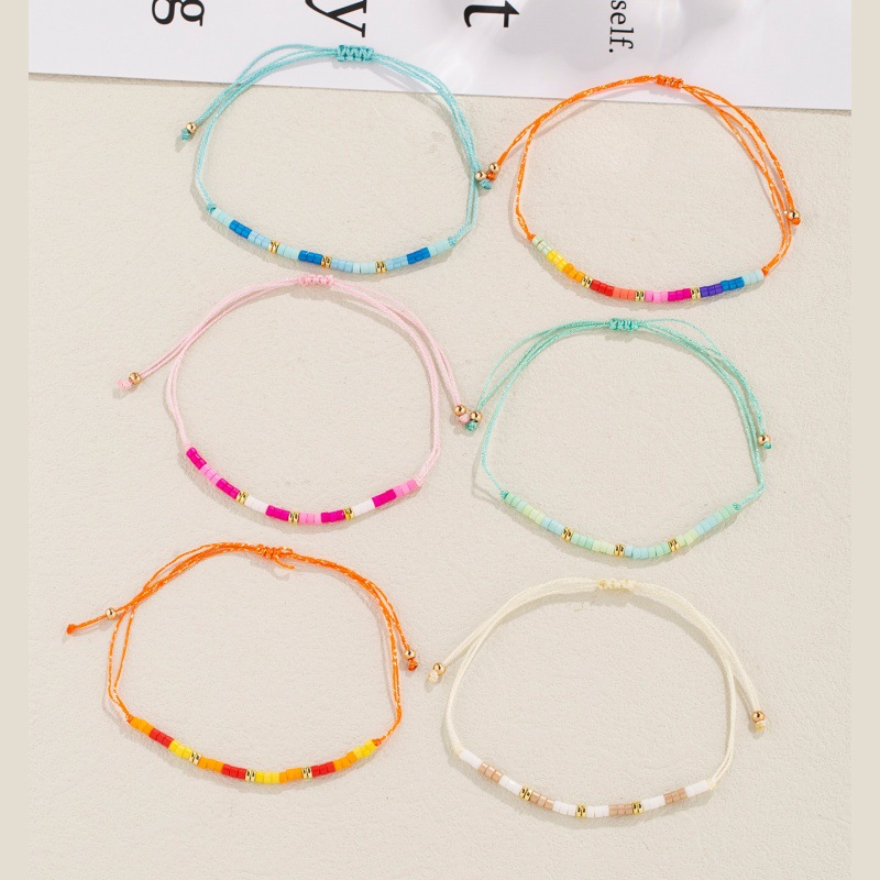 小清新渐变彩色米珠手工串珠手链多巴胺色米珠可调节手绳手串饰品