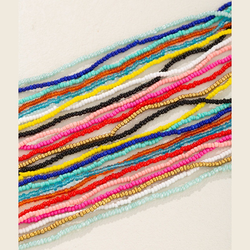 跨境沙滩链套装欧美比基尼链多巴胺色米珠腰链彩色米珠多层腰珠链 投诉