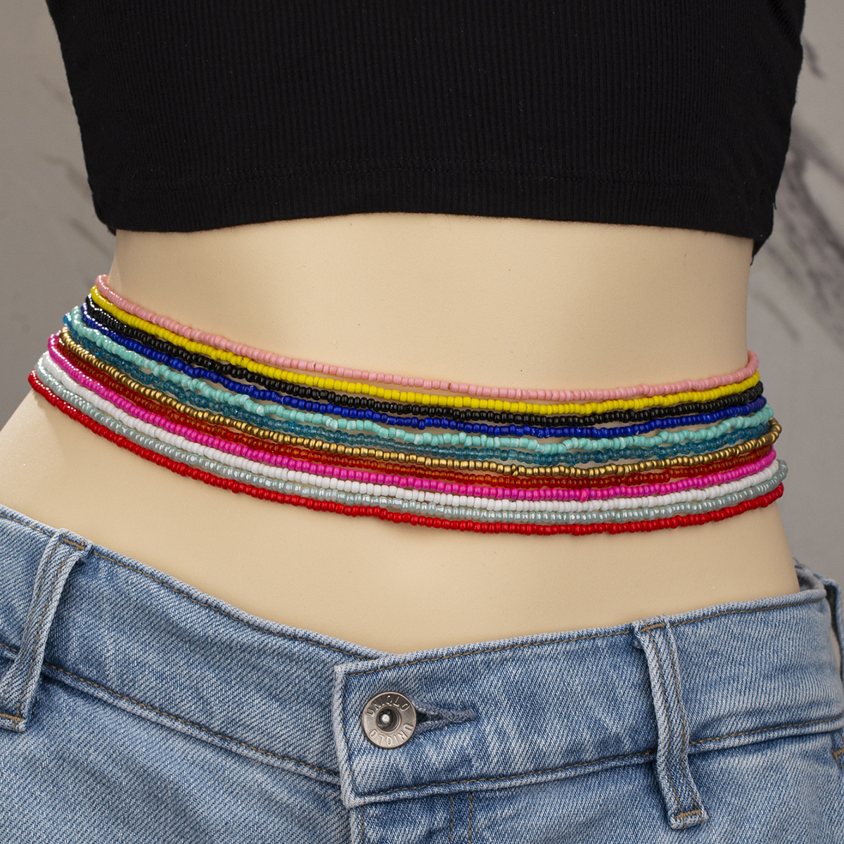 跨境沙滩链套装欧美比基尼链多巴胺色米珠腰链彩色米珠多层腰珠链