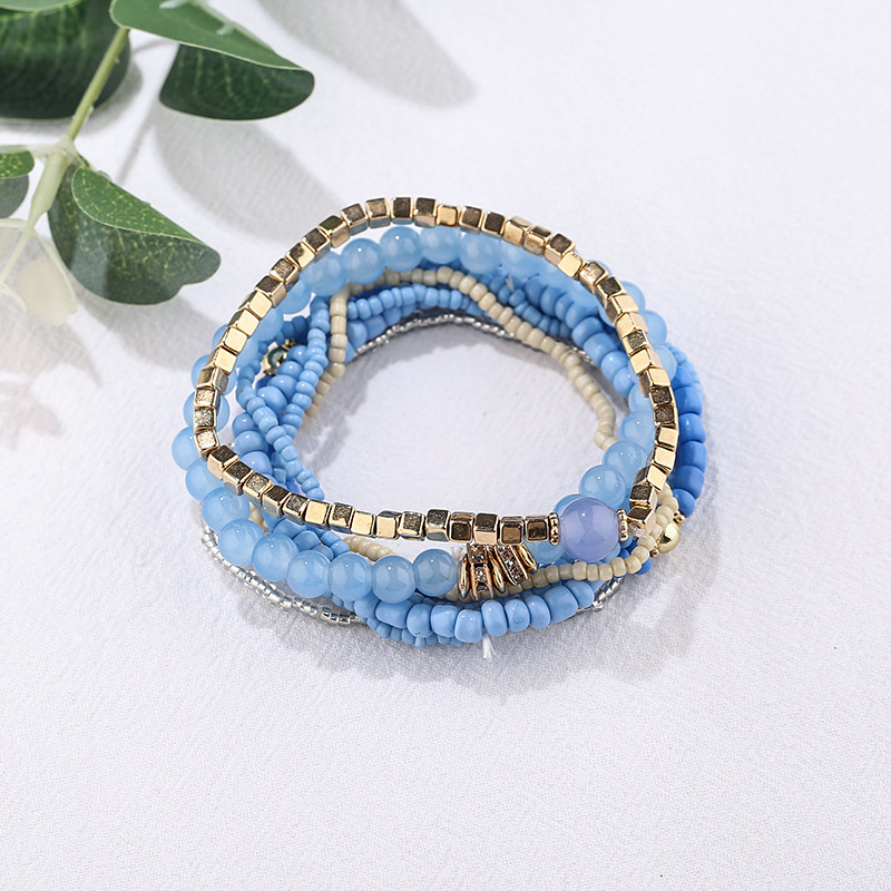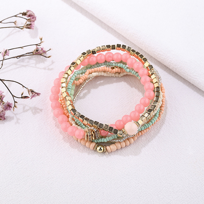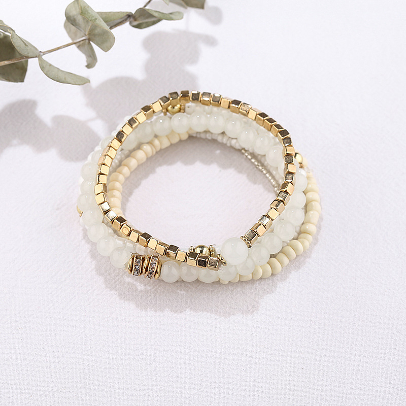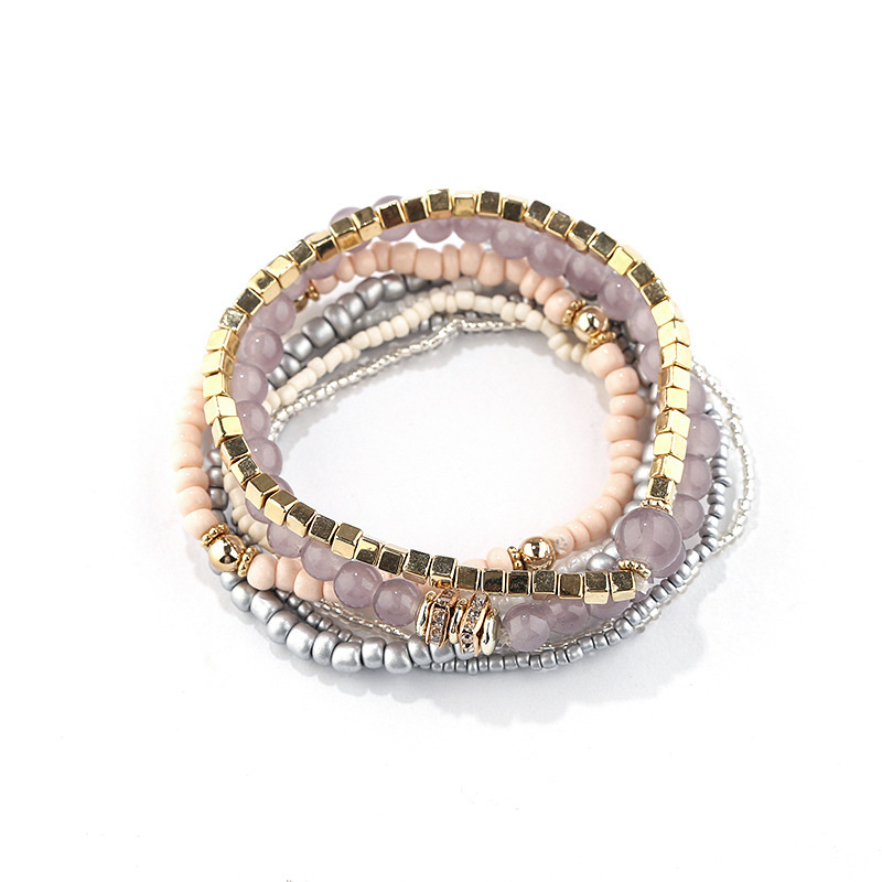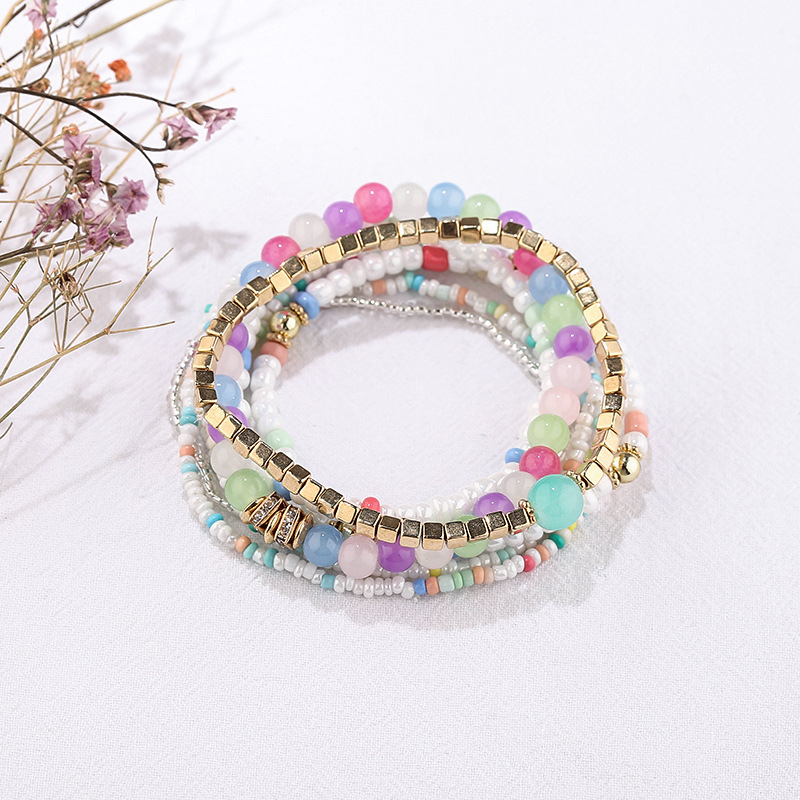 方形金属波西米亚风多层百搭手串时尚天然水晶石手链厂家批发