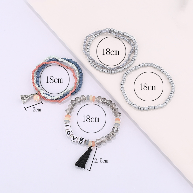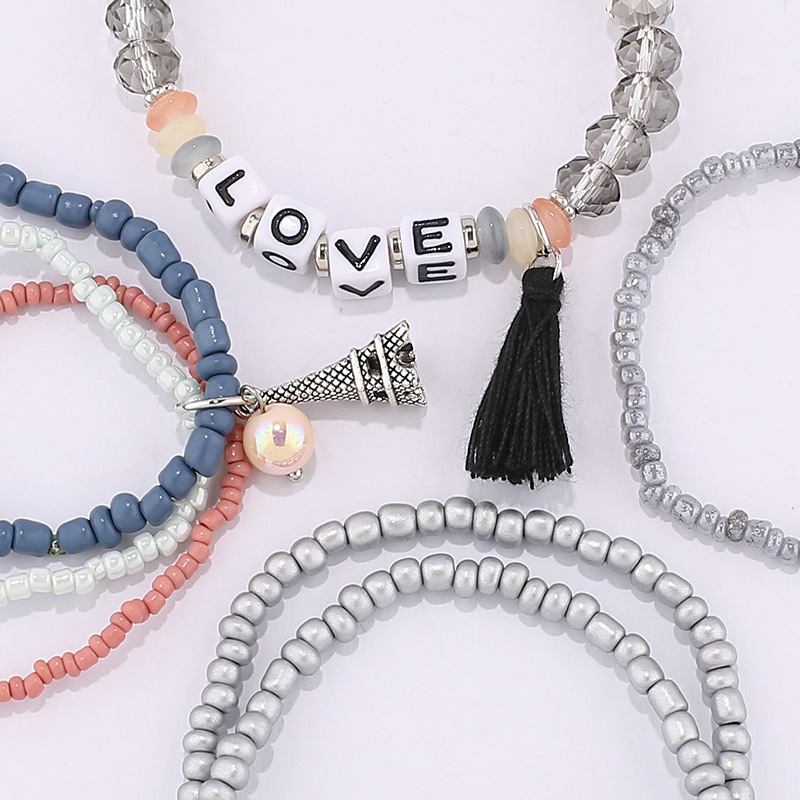 欧美英文字母软陶片珠子手链波西米亚多层米珠铁塔流苏吊坠手串 投诉