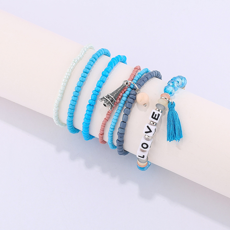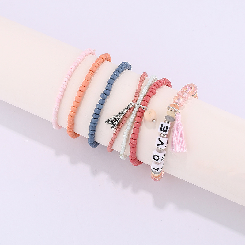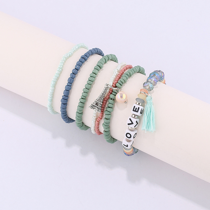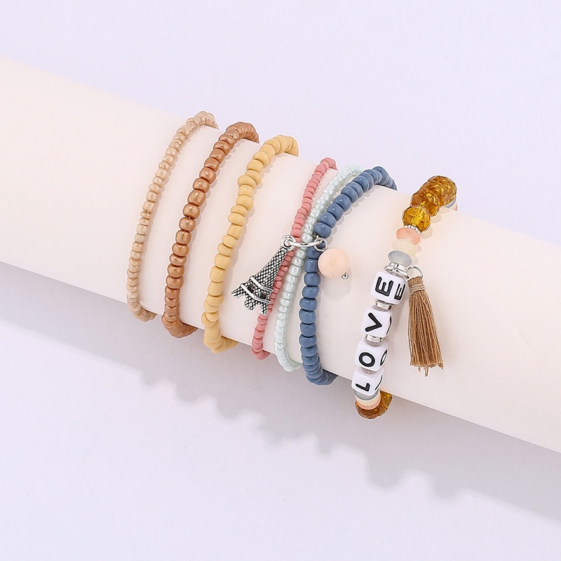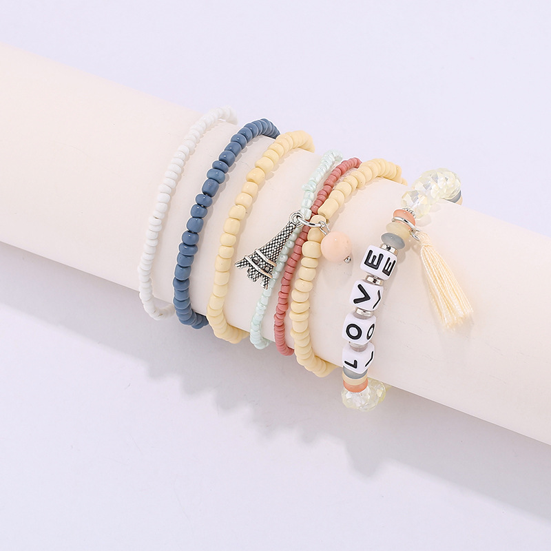 欧美英文字母软陶片珠子手链波西米亚多层米珠铁塔流苏吊坠手串
