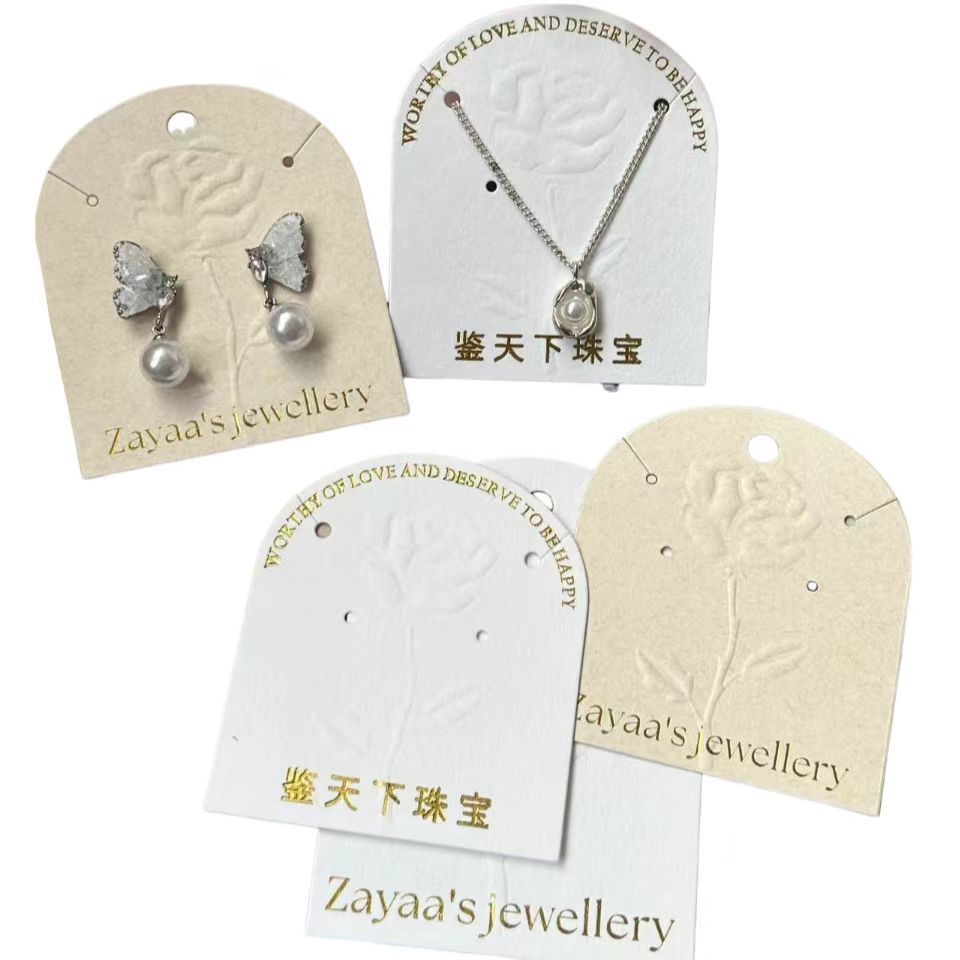 ins玫瑰饰品展示卡纸浮雕玫瑰耳饰珠宝首饰包装卡片定制logo烫金 English | 投诉