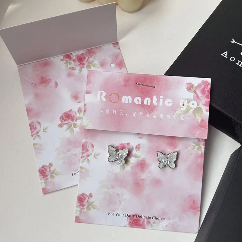 ins少女对折项链耳环卡纸发饰包装珠宝手链卡片文创肠圈背卡批发 English | 投诉