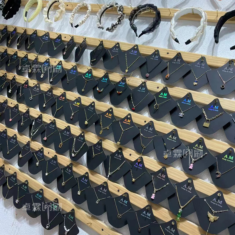 是否跨境出口专供货源: 否 加工定制: 是 货号: ZL-TYK 材质: 黑卡白卡特种纸 适用范围: 饰品包装 项链展示 产地: 广东佛山 印刷形式: 四色 专色 烫银 颜色: 现货黑卡(不含背袋),现货白卡(不含背袋 重量: 0.02 kg/PCS